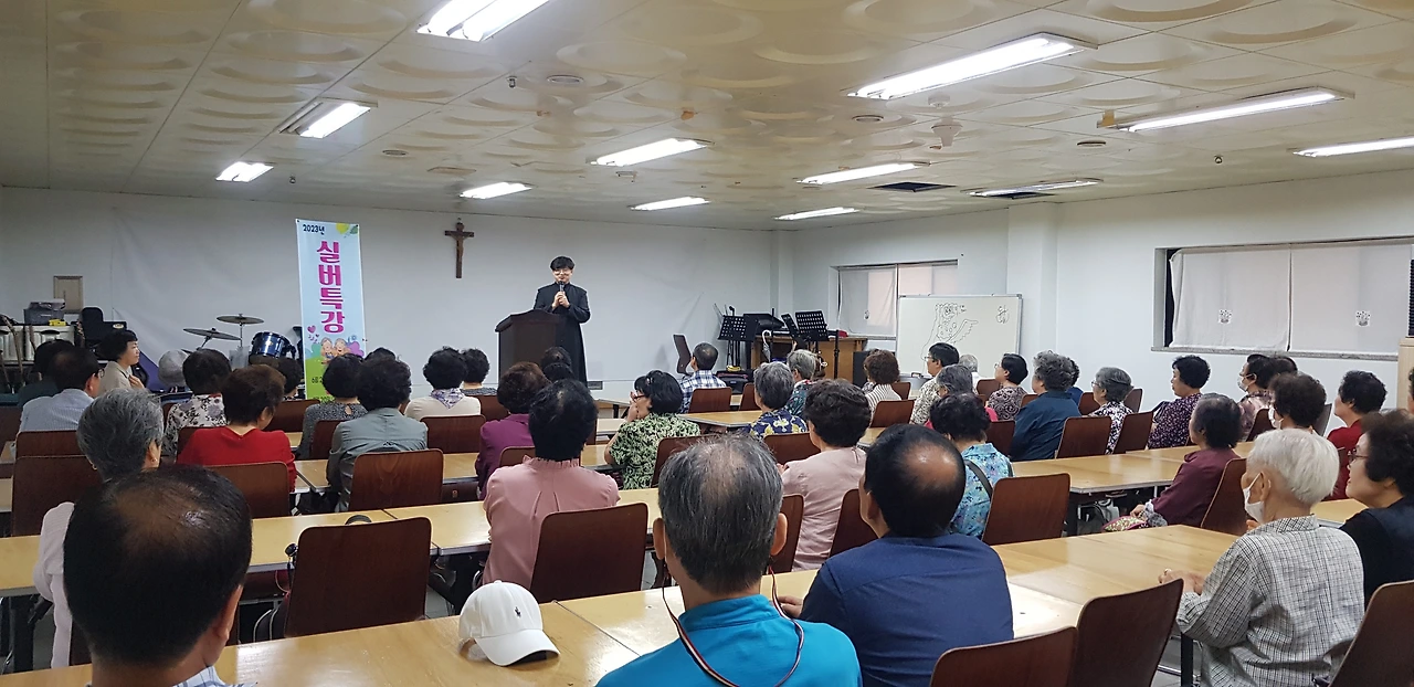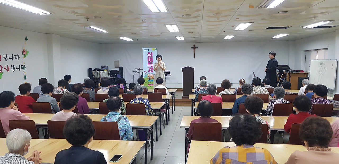 2차 실버특강 신청 접수는 72명이 했지만 62분이 참석하셨습니다. 2차 실버특강을 할 수 있도록 본당 지원과 여가가지 배려를 해 주신 대건 안드레아 주임 신부님, 실버특강을 위해 청년들이 사용하는 소강당의 악기를 정리해 주신 정신부님, 푹푹 찌는 무더위에 성모회와 함께 점심 식사를 준비해 주신 세레나, 세실리아 수녀님, 웃고 즐기며 실버특강에 참석하셔서 체험해 주신 어르신들과 기쁜 마음으로 기꺼이 함께 해준 모든 봉사자분들께 감사를 드립니다. 그리고 미리 식당의 책상과 의자로 자리배치를 해주신 사도의 모후 Cu. 간부님들 고맙습니다. 이번 실버 특강을 위해 모두들 수고 많으셨습니다. 행사를 잘 마칠 수 있어 진심으로 감사드립니다.