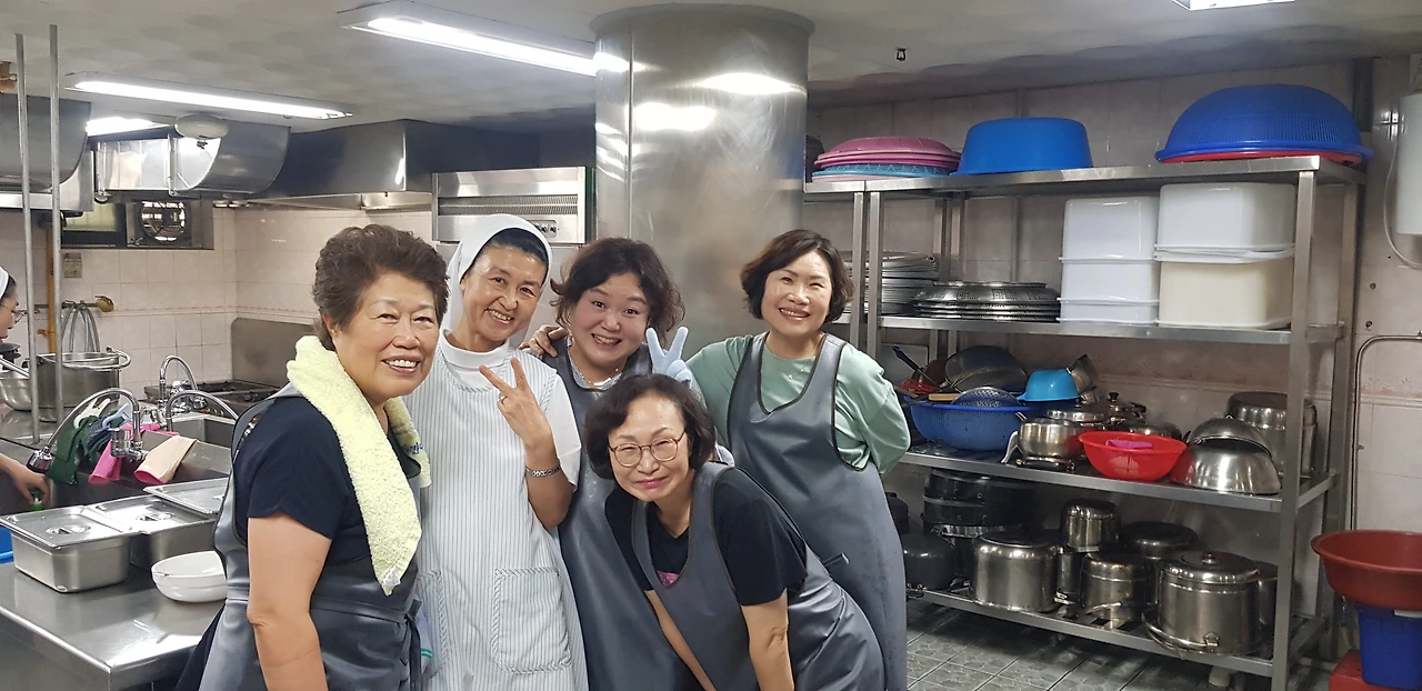 이번 2차 실버특강에는 성모회에서 삼계탕을 하기로 했습니다. 이틀 전에 미리 닭을 주문해 깨끗하게 씻어 핏물을 빼놓는 작업을 해서 냉장고에 넣어 준비했습니다. 특강 당일 날 세레나 수녀님, 성모회장님을 비롯하여 8분이 실버특강에 참석하신 분들께 대접하기 위해 무더위에 땀을 흘러가며 정성스럽게 수고해 주셨습니다. 21일이 중복인 점을 고려하고 어르신들께 삼계탕으로 잠시나마 몸보신으로 정말 제격이었습니다. 무더위에 정말 수고 많으셨고, 늦은 시간까지 치우고 봉사하며 수고를 아끼지 않으셨습니다. 식사하는 어르신들을 위해 일일이 다니며 챙겨 주는 모습이 보기 좋았습니다. 회장님을 비롯하여 바쁘신 중에 기꺼이 봉사해 주신 성모회 봉사자분들께 진심으로 감사를 드립니다. 이번에 삼계탕의 싱싱한 닭은 적극적이고 능력 있는 성모회장님이 본인이 세를 준 정육점에서 100마리를 빨랑카 받았다고 합니다. 후원해 준 건영상가 다원 정육점 사장님께 감사드립니다.