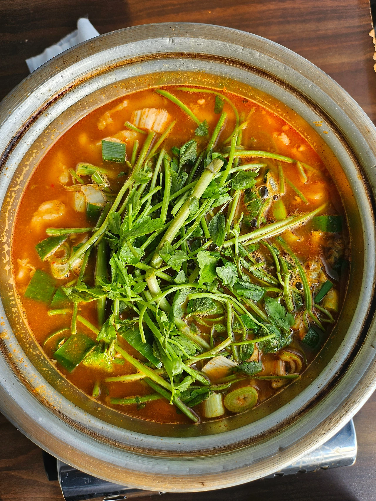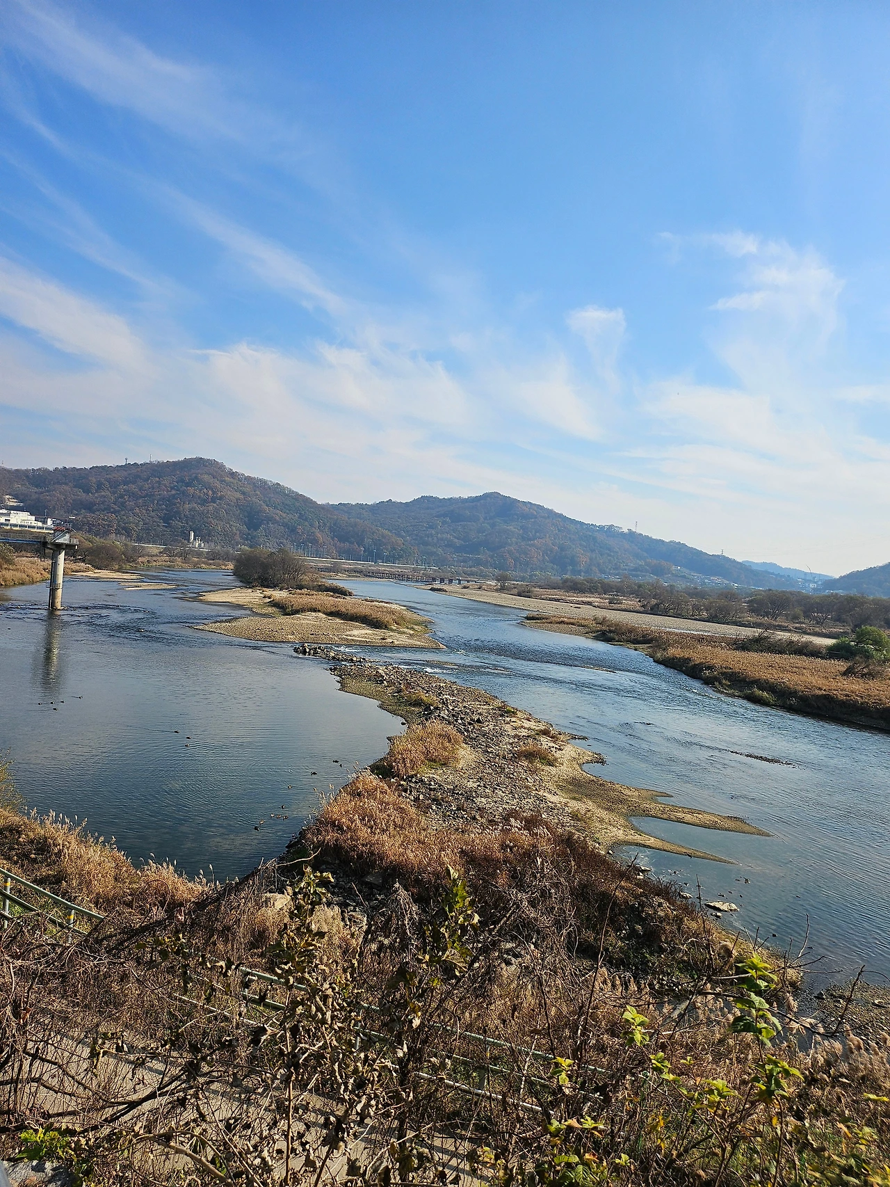 남편은 가끔 "우리 뭐 먹으러 갈까?"하고 물어본다. 그러더니 미리 생각을 해 봤는지 "우리 용뎅이 매운탕 먹으러 갈래?"하고 제안을 했다. 그래서 우린 주말에 세종시 부강에 있는 용뎅이 매운탕 집을 다녀왔다. 세종시로 편입되기 전에는 충북 청원군에 속했던 곳이다. 이곳은 많은 사람들이 맛집으로 생각해 찾아가는 부강 부용에 있는 <용뎅이 매운탕> 집이다. 민물 메기로 만들어 부드럽고 담백하고 칼칼한 맛 때문에 우리 부부도 가끔 찾는다. 게다가 직접 수제비를 바로 떼서 만든 매운탕이라 쫄깃한 식감이 아주 입맛을 당기게 한다. 대청댐에서 내려오는 물속에 청둥오리도 놀고 있고 탁 트인 시야가 이곳을 가끔 생각나게 하기 때문이다. 거의 집밥을 고수하는 편이지만 가끔은 이렇게 바람도 쏘일 겸 훌쩍 밖으로 나간다. 용뎅이의 어원은 용뎅이산에서 기인한다고 전해진다. 세종시 연동면에 명학리에 있는 산으로(고도 98M) 이산의 남쪽에는 금강이 흐르고 있다. 산아래 강가에서 용이 승천했다고 해서 용뎅이라고 불렀다는 전설이 있다. 그래서 마을 사람들은 이곳 나루를 용뎅이 나루, 그 뒤에 있는 산을 용뎅이 산이라 부른다. 누런 소가 강을 건넜다는 뜻이 담겨 있다고 한다.