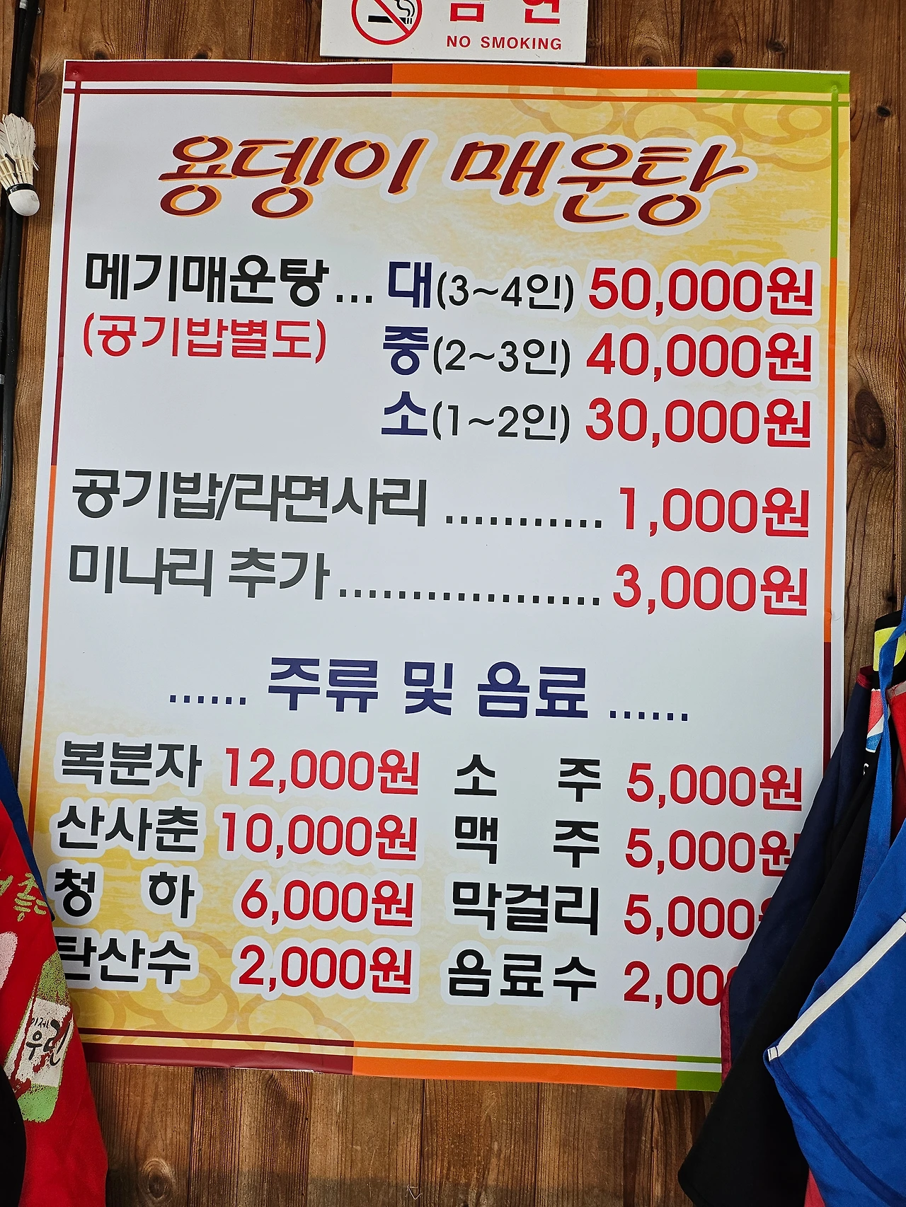 용뎅이 매운탕은 3년 전만 해도 1인분에 만원 정도를 했으나 이제는 가격이 올라 1인분에 15000원 정도 한다. 대, 중, 소로 주문이 가능하며 4인기준 대가 50,000원이다. 우리 부부는 2인이 주문하여 30,000원짜리 소를 주문해서 먹었는데 양은 꽤 많았다. 밥은 따로 주문하는데 1,000원을 받는다. 매운탕에 수제비가 있다 해도 밥은 먹어야 매운탕의 맛을 제대로 느낄 수 있는 것 같다. 반찬은 다소 부실하지만 매운탕이 맛있어 충분히 커버가 된다. 대부분 매운탕은 직접 끓이면서 먹어야 제맛을 느낄 수 있는데 이곳도 그렇게 먹을 수 있어 좋다. 칼칼한 국물에 부드러운 메기와 야채, 그리고 수제비가 들어간 용뎅이 매운탕은 먹어도 질리지 않는다. 아니 그 맛을 잊지 못해 많은 사람들이 찾는 곳이기도 하다. 수제비는 매운탕의 맛을 한결 부드럽게 하면서 쫄깃한 식감은 매운탕을 더욱 사랑하게 만든다. 밥까지 말아서 뼈를 잘 발려서 먹으면 세상이 행복해진다. 전에는 믹스 커피를 먹을 수 있었는데 이제는 아래층에 커피숍이 생기고부터 없어져 아쉽다. 그래서 내려와 탁 트인 시야를 바라보며 커피를 주문해 마셨다. 주변에 카페가 있긴 하지만 먼 곳을 바라보며 마시는 커피가 좋다. 오늘도 남편과 매운탕을 먹으며 같은 시간과 맛을 공유했다. 이렇게 남편과 함께 행복한 시간을 보낼 수 있음에 감사하다.