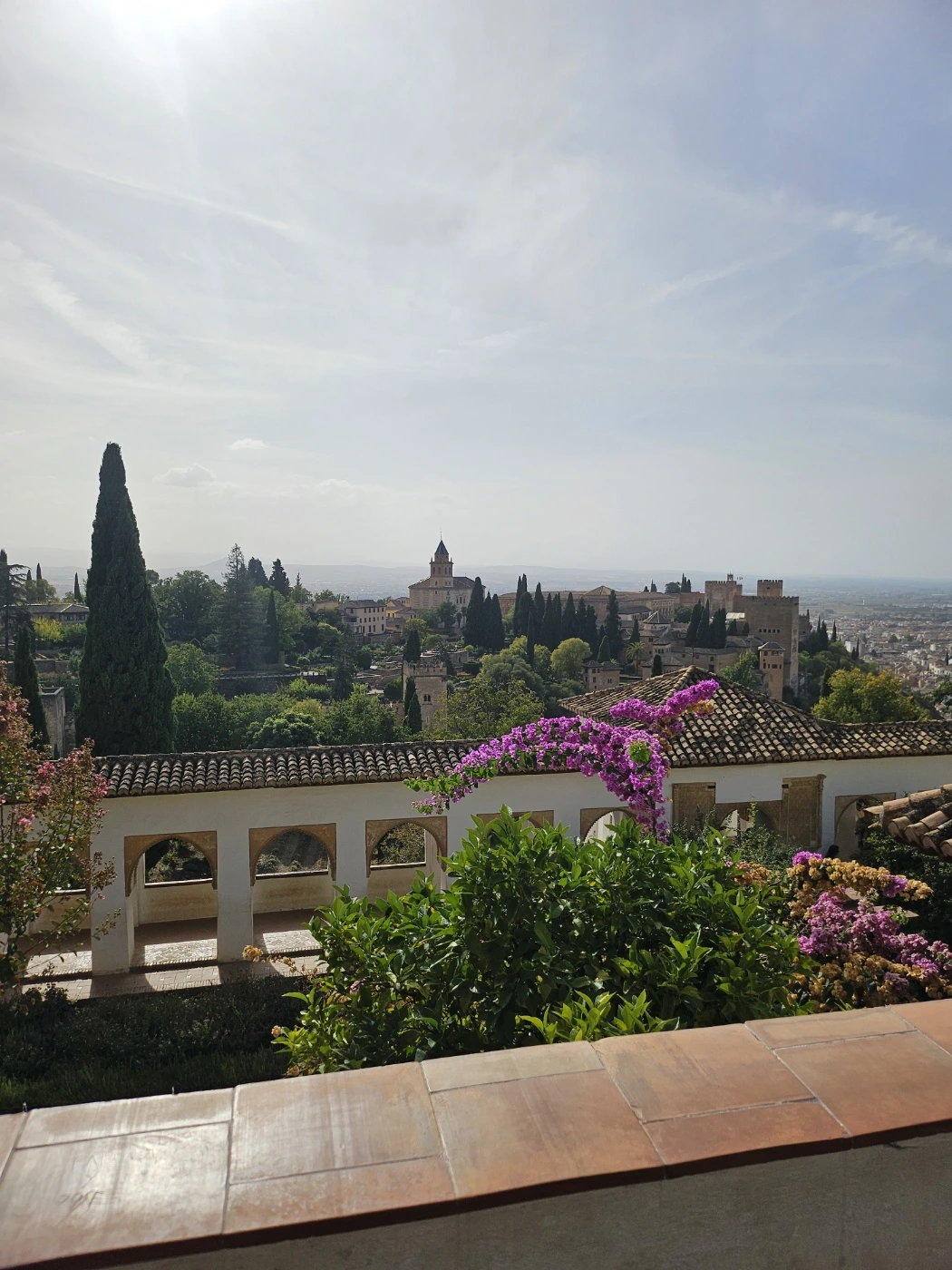 발렌시아 호텔 조식 후 5시간 걸려 그라나다로 가는 차 안에서 가이드의 설명이 자주 있어서 지루하지 않게 이동하였다. 이슬람 건축의 최고 걸작이자 그라나다의 상징인 알함브라 궁전과 헤네랄리페 정원을 보기 위해서이다. 이 두 곳은 이슬람 문화와 스페인 왕국의 역사가 만나는 곳이다. '유럽 속에 천국 정원'이라 불릴 만큼 아름다운 유산으로 칭한다. 알함브라 궁전은 13세기 무렵, 이슬람계 나스르 왕조가 수도를 그라나다로 옮기면서 왕의 거처를 세운 궁전이다. 1492년 페르난드와 이사벨라가 그라나다를 정복하며 700년간 이어진 이슬람 통치가 끝나고, 스페인 통일이 완성되었다. 이후 궁전은 기독교 왕들이 사용하면서 이슬람 문화와 기독교 문화가 공존하는 독특한 예술 양식을 이루게 되었다고 한다. 알카사바 군사 요새는 알함브라 단지에서 가장 오래된 부분으로 왕궁을 지키는 요새이다. 높은 망루 '벨라 탑'에 오르면 그라나다 시내와 시에라네바다 산맥의 절경을 볼 수 있다. 나르스 궁전은 알함브라의 핵심이자 가장 아름다운 곳으로 알려져 있다. 섬세한 아랍식 문양, 천장의 기하학적 무늬, 물의 반사 등 이슬람 예술의 절정을 보여 준다.