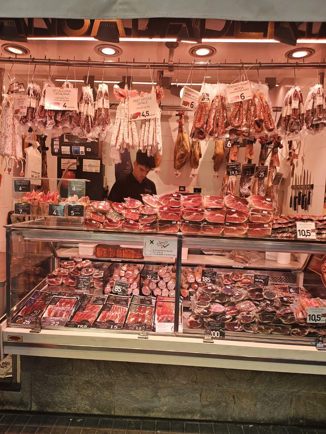 콜럼버스 동상을 등지고 5분 정도 가면 레이얼 광장과 구엘 저택이 있고, 10분 정도 더 가면 보케리아 시장이 있다. 보케리아 시장은 현재는 밀집된 상가로 많은 사람들이 모이는 곳이지만 세인트 요셉 수도원 앞마당이었다고 한다. 람블라스 거리 바닥에는 "얕은 샘물 물가"를 의미하는 복선 물결치는 모양을 볼 수 있다. 우리 몇 사람은 물결무늬를 밟으며 보케리아 시장 부근에 있는 *벅을 가기 위해 한참을 걸어갔는데 화장실을 가기 위해서였다. 시장에 들어가서 잠깐 과일 가게를 둘러보았을 때 납작 복숭아가 눈에 확 들어왔다. 너무 많이 사기는 짐이 될 것 같아서 4개만 달라고 있더니 7유로 정도를 받았다. *벅에서 커피를 시키고 화장실에 가서 납작 복숭아를 깨끗이 씻었다. 세부부께 하나씩 드리고 우리는 복숭아를 맛보았다. 산티아고 순례길에 먹었던 그 맛이 배어 있어 행복했다. 부지런히 커피를 손에 쥐고 콜럼버스 동상을 향해 걸어갔다. 주변에 구경할 것들은 많았지만 시간이 부족해서 몇 개의 마그넷을 사고 급히 갔다. 아쉬웠던 점은 콜럼버스 동상을 앞에서 제대로 못 보고 뒤에 사진을 찍은 것이다. 나중에 이 부분에 대해 가이드에게 조언했다.