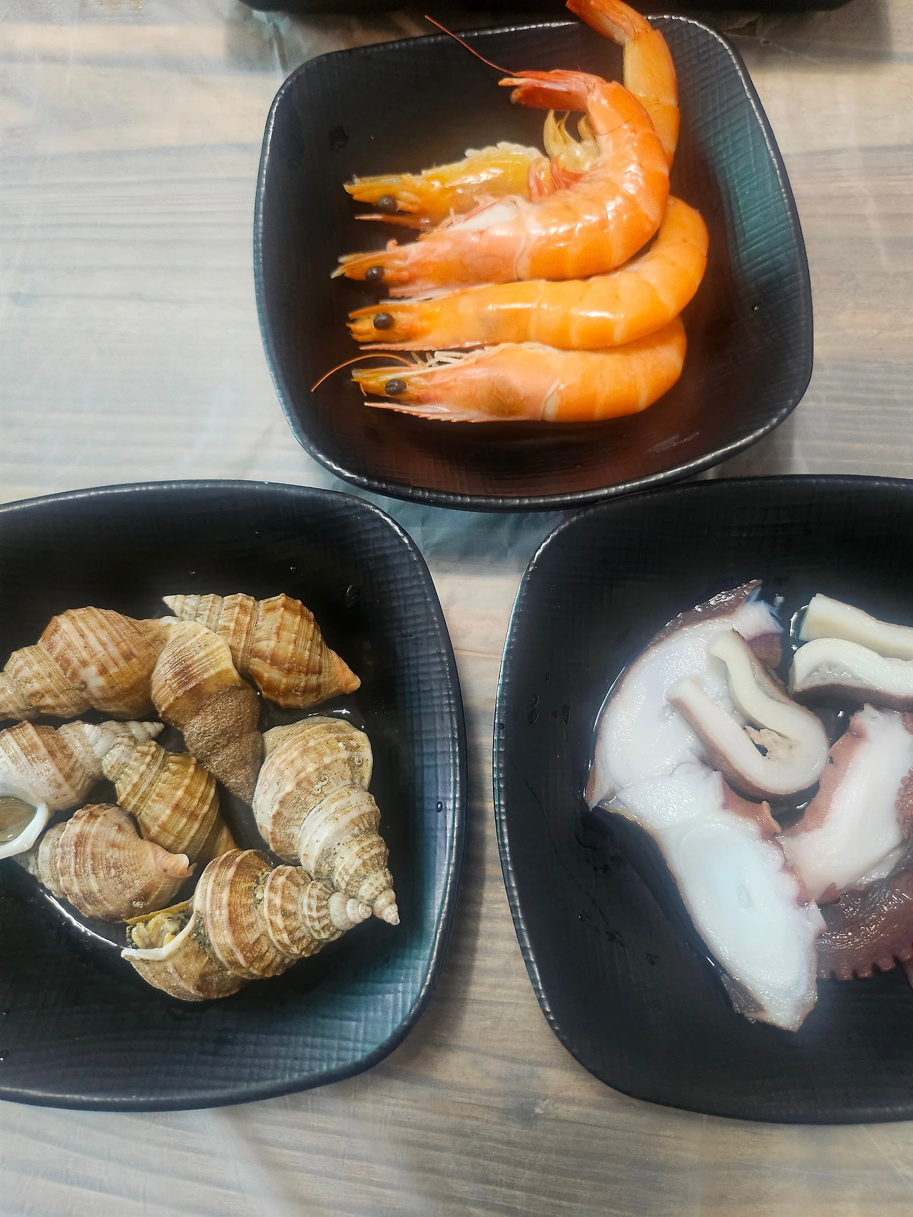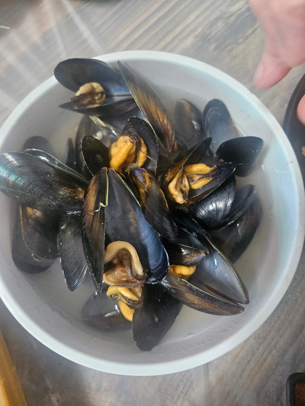 점심에는 부근에서 회를 먹기로 했는데 양남성당 신자분들이 적극 소개해 주었다. '선희네 횟집'은 가보니 크지 않았지만 쥔장이 친절했다. 회가 나오기 전에 먹는 것들, 홍합, 과메기, 새우, 문어, 고등도 주셨고 생선회 가격도 저렴하고 신선해서 맛이 좋았다. 정말 양껏 먹을 수 있어 좋았다. 물론 매운탕도 기가 막히게 맛이 좋았다. 식사를 마친 후 가정기도를 바치고 나서 구아녜스 회장의 제안으로 경주 1박 2일의 순례 여정에 대해서 의견 나눔을 하였다. 서로가 품고 있는 생각을 들어보니 다들 만족한 여행이었고 좋았다고 한다. 밖으로 나가서 해변을 둘러친 높은 담벼락에 올라가 사진을 찍었다. 바람은 불었으나 포즈를 취하며 각자가 원하는 사진을 남기고 단체 사진도 찍었다. 나중에 회집 쥔장이 와서 셔터를 눌러 주기도 해서 더 풍성한 사진이 되었다.