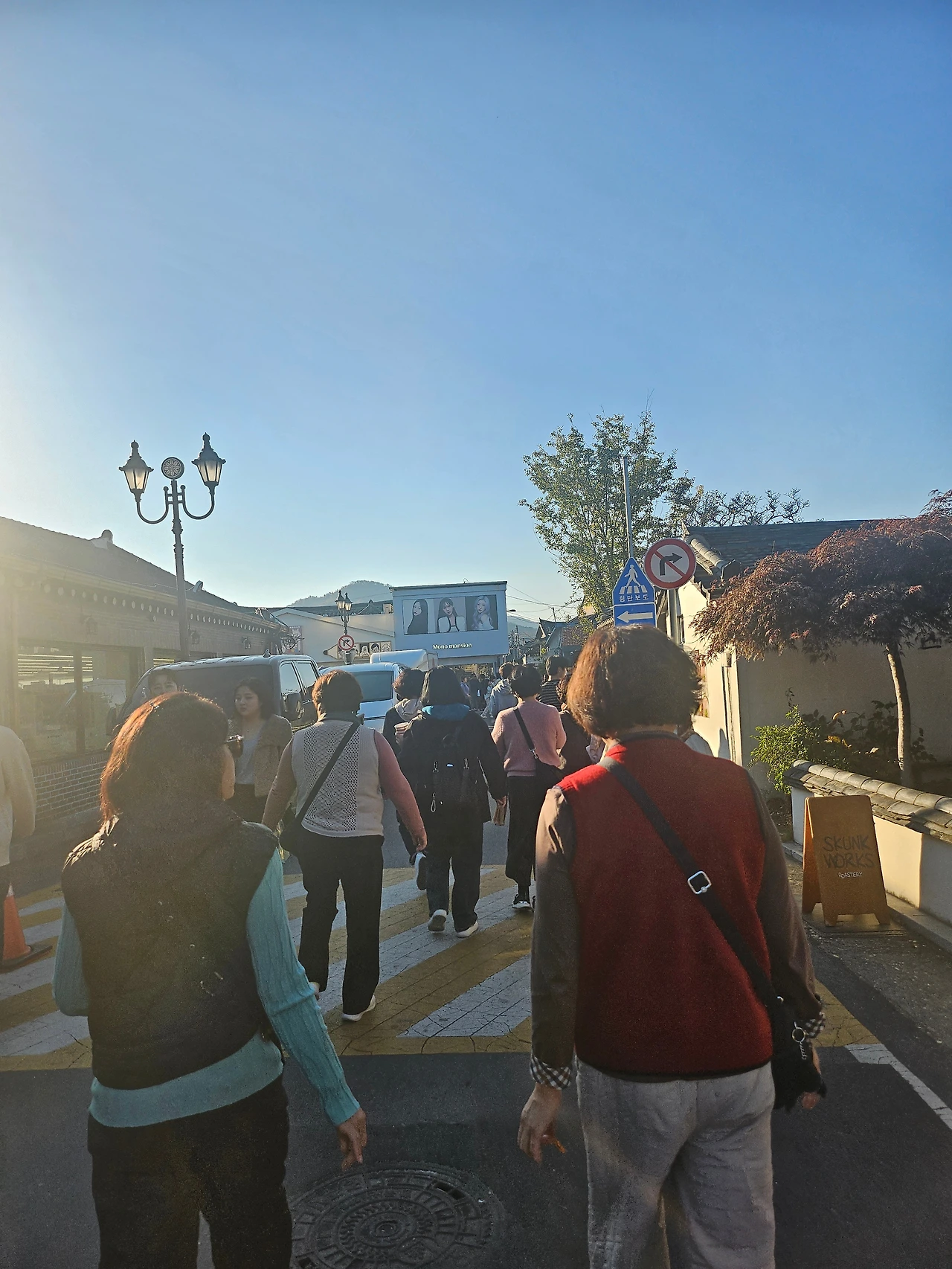 우리는 봉고차를 타고 경주 시내로 들어갔다. 경주 시내에서 가장 핫한 거리인 황리단길을 걸었다. 사람들이 무척이나 많아서 장터에 와 있는 느낌이 들었다. 전통 한옥 스타일 건물 안에 세련된 카페, 레스토랑, 공예품 가게가 많아서 '레트로+현대감성'이 공존하는 거리이다. 우리는 유명하다는 커피 전문점을 찾기 위해 이리저리 배회하면서 경주 시내를 걸었다. 오랜만에 친구들과 나들이를 나온 것처럼 발걸음이 가볍게 느껴졌다. 나중에 알고 보니 카페는 측백나무에 감싸여 밖에서는 볼 수 없었던 장소였다. 입구를 지나 카페에 들어서니 이미 차를 마시고 있는 사람들이 많아서 앉을자리가 없어 기다리다가 밖으로 나왔다. 이곳에서 커피를 마시진 않았는지만 많은 사람들이 찾는 곳이고 나름 운치있는 커피숍이다.