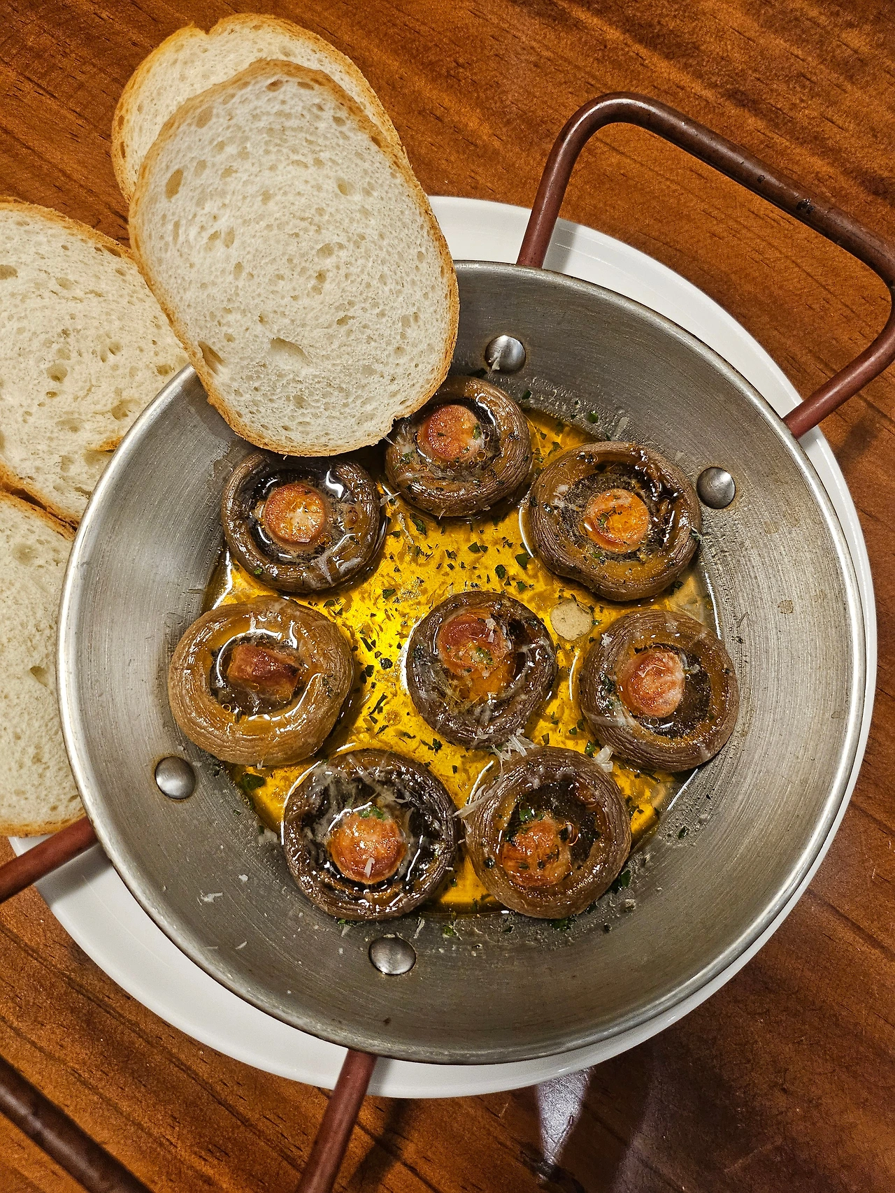우리 네 부부는 청주 ME에서 봉사부부로 알게 되었다. 지금은 충주 레오 & 레아 부부만 교구 안에서 봉사하고 나머지는 은퇴를 했거나 사정상 봉사를 그만둔 상황이지만 오랜만에 만나도 친숙하게 느껴져 반갑고 유쾌하다. 그런 데다가 스페인 순례길을 다녀온 부부이니 만나면 할 이야기기가 정말 많다. 연신 하하 호호~ 웃음이 끊이질 않는다. 우리는 인사를 나누고 음식을 주문했다. 성가대 지휘자로 활동하고 있는 라파엘 씨는 산티아고 순례를 다녀오고 국내에서 스페인 음식을 많이 먹으러 다녔다고 한다. 그래서 여기저기 음식점을 많이 알고 있는 라파엘 씨가 선택해서 예약했다. 처음 나온 요리는 양송이 타파스이다. 듬뿍 들어간 올리브유에 양송이를 굽고 용기에 식빵이 얹어 나왔다. W들은 운전을 해야 해서 술을 마시긴 어렵지만 오늘의 분위기를 살리고 잔을 부딪치려 술잔에 맥주를 조금씩 받았다. 우리는 맥주와 와인을 시켜서 잔을 부딪치며 산티아고 순례자들 답게 부엔 까미노를 외쳤다. 다음엔 뽈보 요리였는데 스페인에서 먹었던 음식과는 달랐지만 문어는 아주 연하고 맛이 괜찮았다. 작년에 세부부가 처음 만났을 때는 비싼 와인을 주문해서 음식값이 많이 나왔던 기억이 있다. 그래서 이번엔 비싼 와인은 자제하자고 미리 이야기했다. 요리 마지막을 장식한 건 스페인의 대표요리 빠에야이다. 우리는 생장 가기 전 까르푸에서 빠에야를 사 갖고 가서 레인지에 데워서 저녁으로 먹었다. 그래도 맛이 괜찮았다. 오늘 나온 빠에야는 바닥에 거의 깔리게 새우와 해물을 넣어 볶고 홍합으로 둘레를 장식했다. 해물이 비싸서인지 별로 없어 아쉬웠다. 그래도 스페인식당에서 빠에야를 먹을 수 있음에 당시의 회상하며 추억을 나눌 수 있었다. 이런 게 바로 같은 길을 걸었던 사람들이 누릴 수 있는 특권 아니던가? ㅎ
