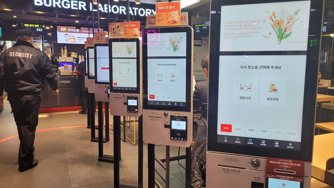 이른 아침 출장길 서울역에서 패스트푸드를 먹곤 한다. 오늘은 롯데리아를 들렀다. 기차를 타러 가는 길에 공복을 해결하는 가장 편한 방법이라 늘 사람들이 붐비는 곳이다. 기차 편수가 줄어서 그런지 오늘은 조금 한산한 편이었다.