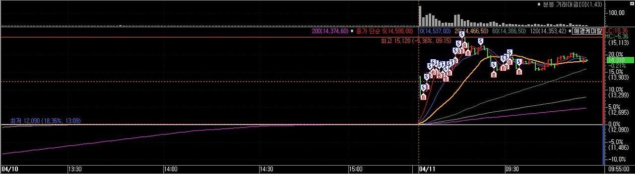차트에서 1파 상승이 확인되면 차트보단 호가창만을 관찰한다.