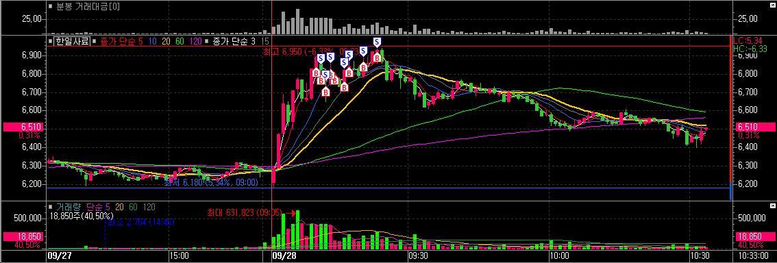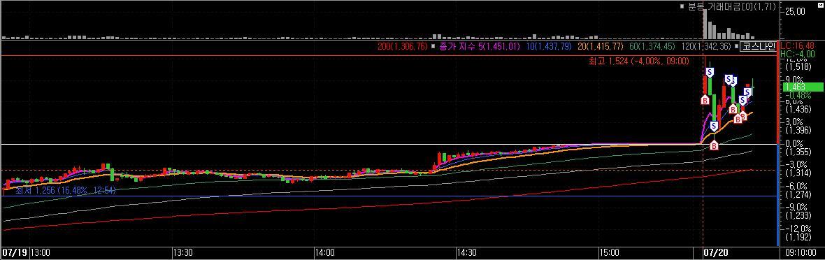 전일 상한가 혹은 15% 이상 상승 마감한 종목