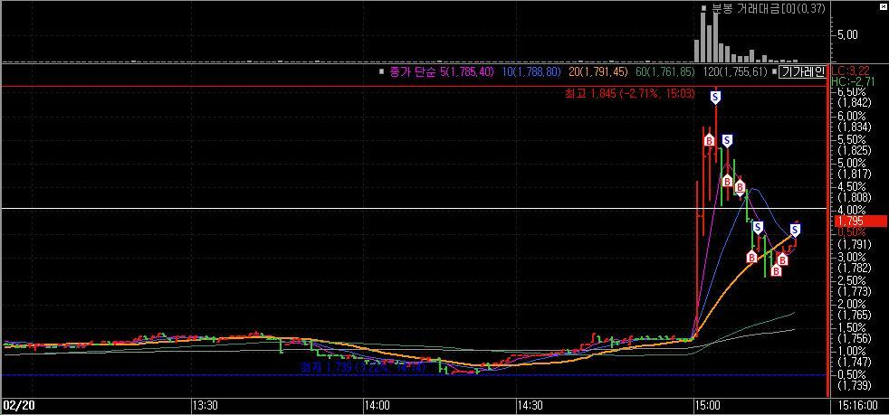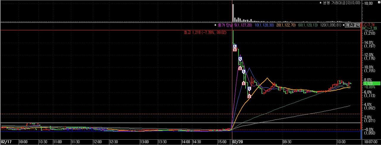 해당 되돌림은 호가창에서 나타나는 흐름이므로 1분봉 차트에서도 포착할 수 없는 경우가 많다.