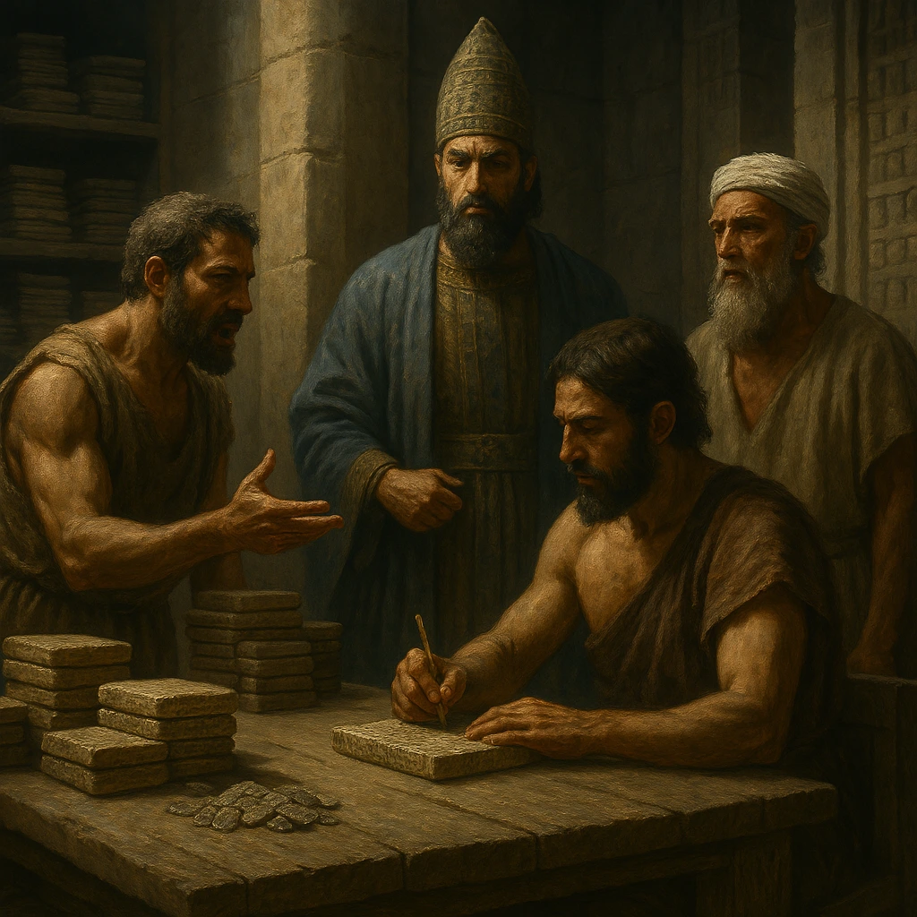 신용 거래는 설형문자로 새겨진 점토판 차용증(I.O.U tablets)으로 남겨졌으며, 이는 현대의 차용증과 유사한 기능을 수행하였다. 대표적인 문서 구성은 다음과 같다:
