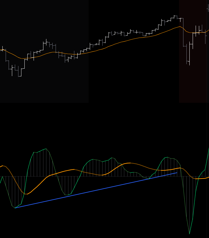 MACD의 단기 변형으로 볼 수 있다. 전통적인 MACD는 12EMA, 26EMA의 차이를 계산하고 9EMA Signal Line을 사용한다. (+히스토그램)