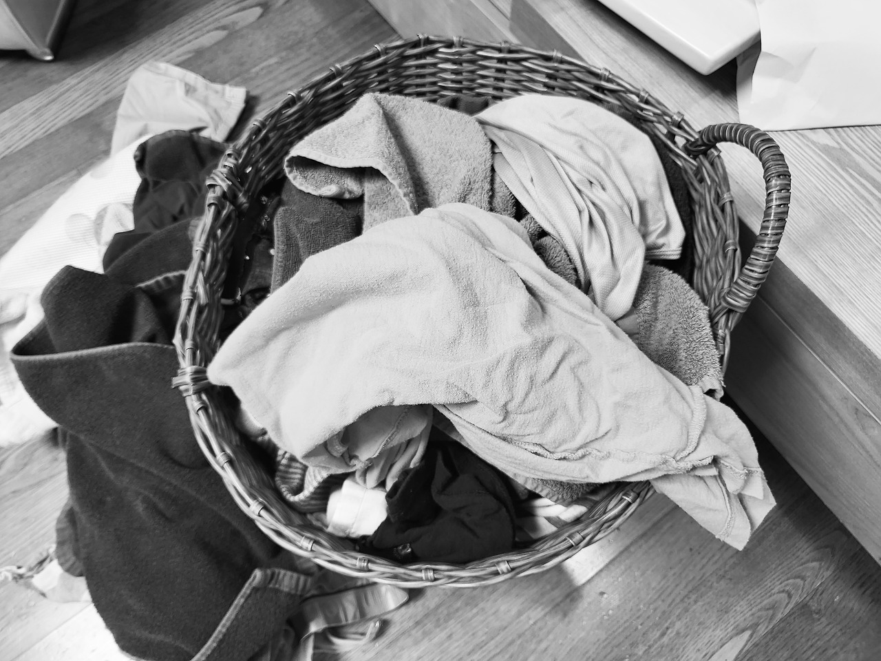 어젯밤은 바빠 건조기 돌린 빨래도 정리 못하고 대충 바구니에 넣어두었다.
