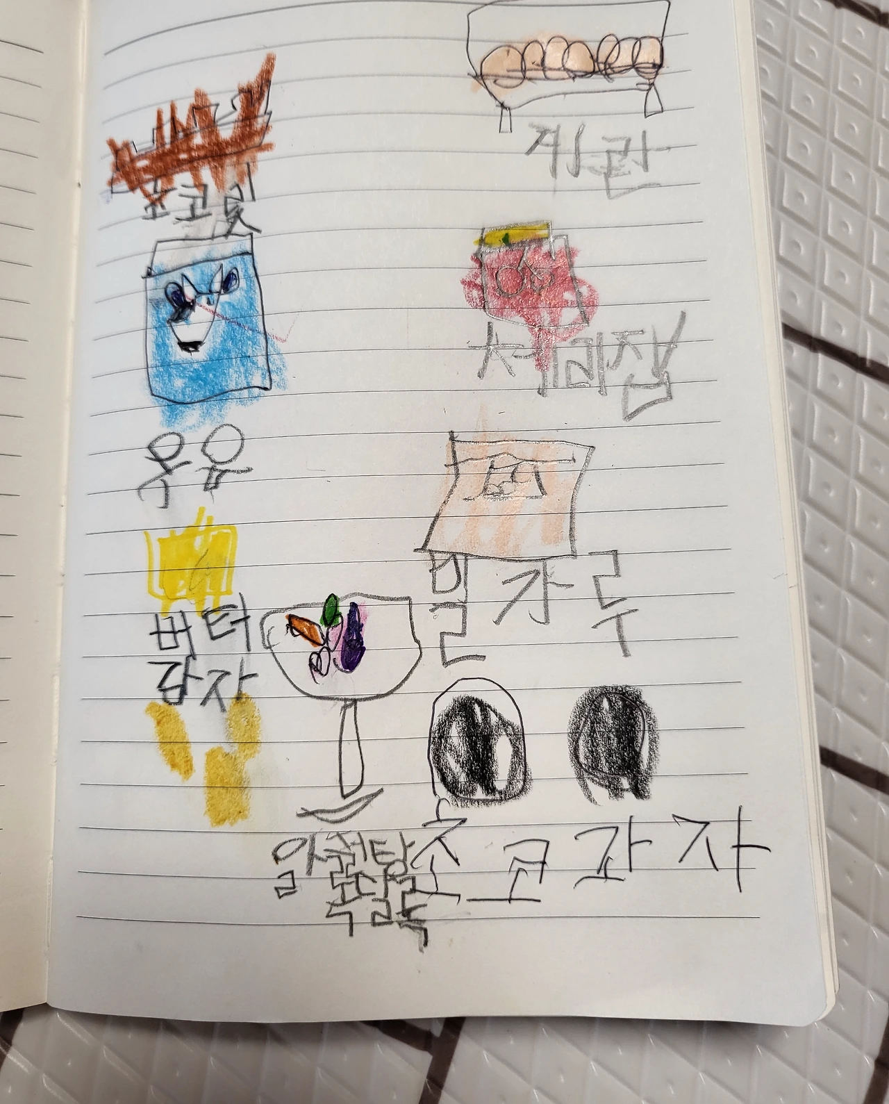 최근 아이가 그린 '체리파이 만들기' . 이젠 서툴더라도 본인이 원하는 글자를 쓸 수 있다.
