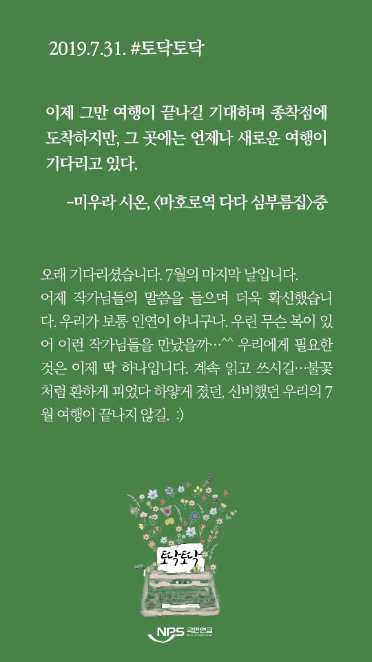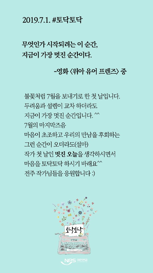 작가탄생 프로젝트가 진행되는 한 달 동안 그녀는 하루도 빠짐없이 좋은 글귀를 보내주며 우리들을 토닥토닥 다독였다. 참으로 행복했던 한 달이었다. 첫날과 마지막날의 글귀를 소개한다.