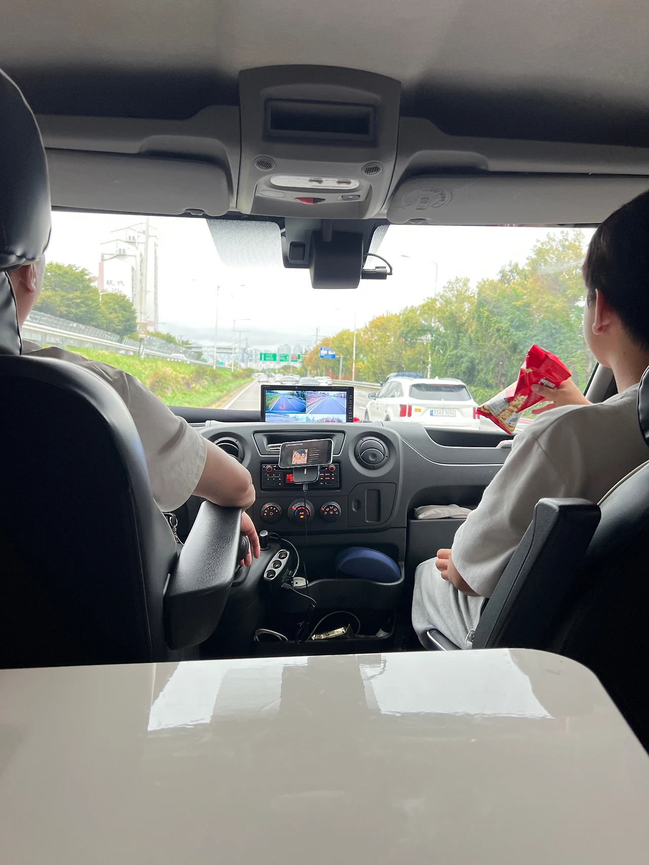 고 1 아들 녀석은 흥에 겨워 흥얼흥얼 노래를 부르며, 괴자도 아작아작 먹으며 강변북로를 달린다.