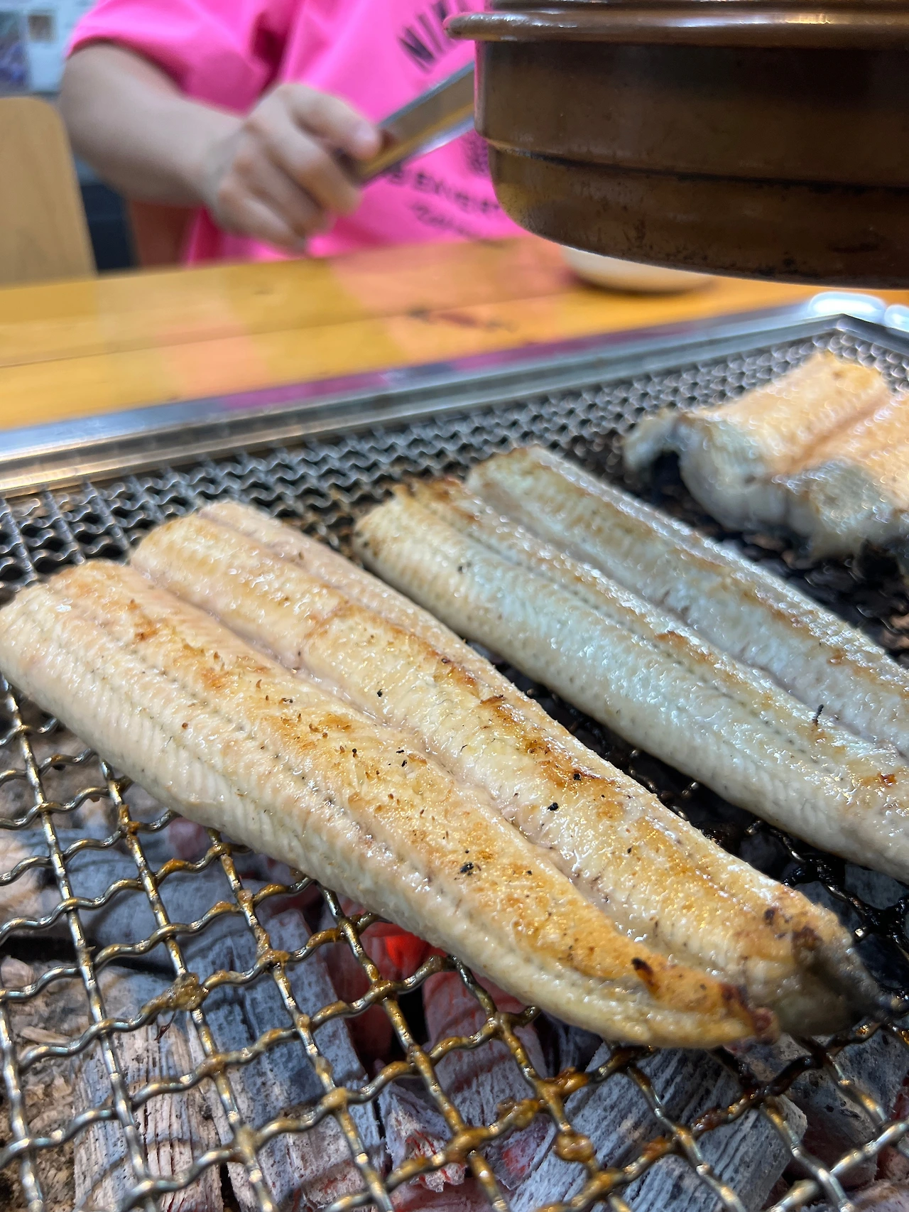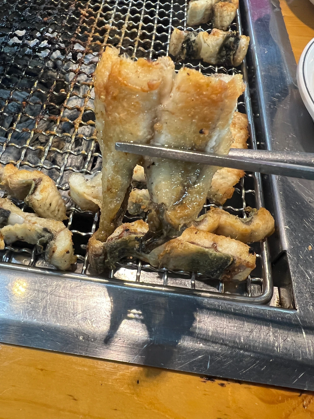 숨을 고르며 식사를 한다.