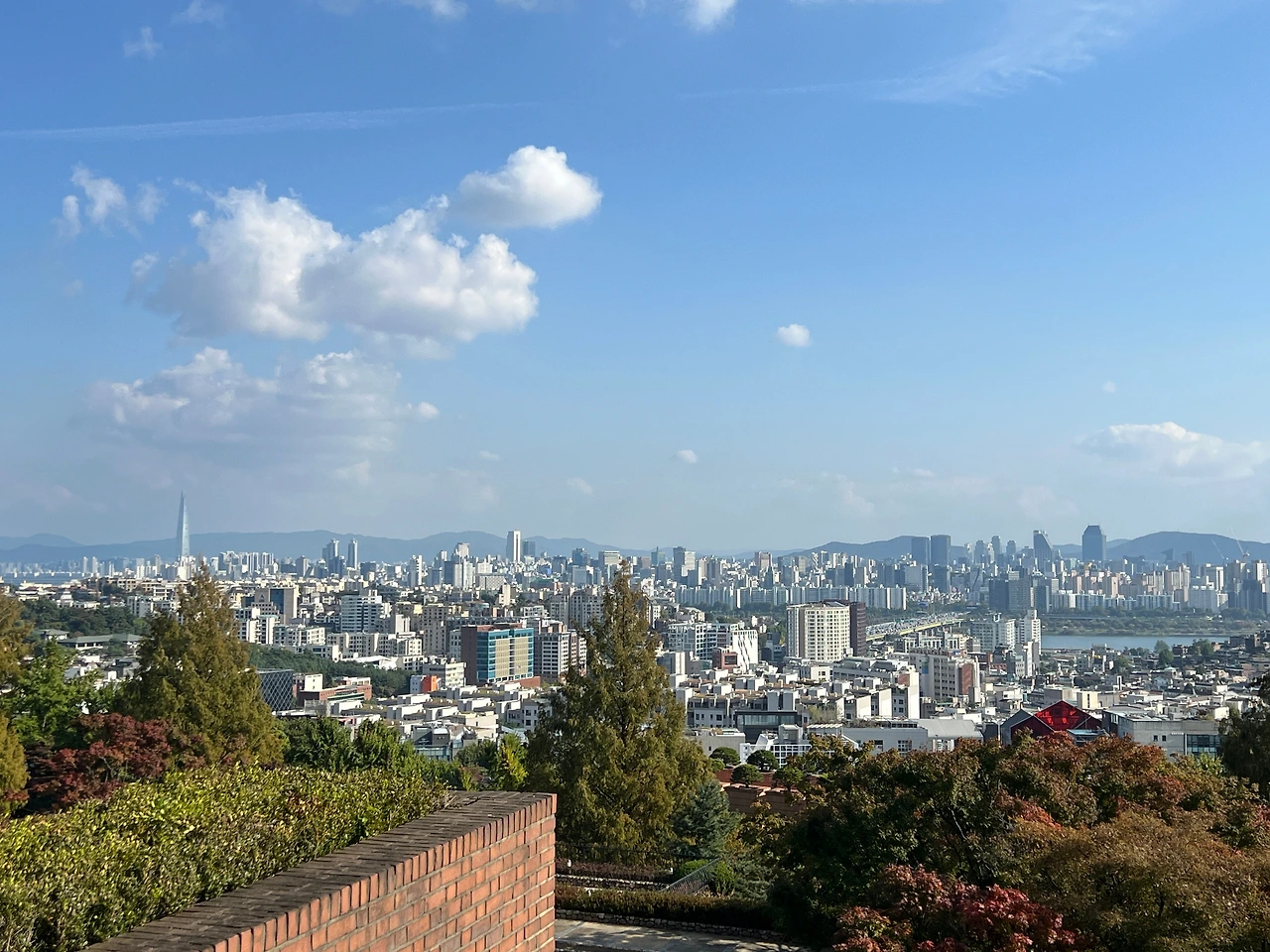 남산 하얏트 호텔앞에서 바라본 하늘은 푸름이 가득차 올랐다.