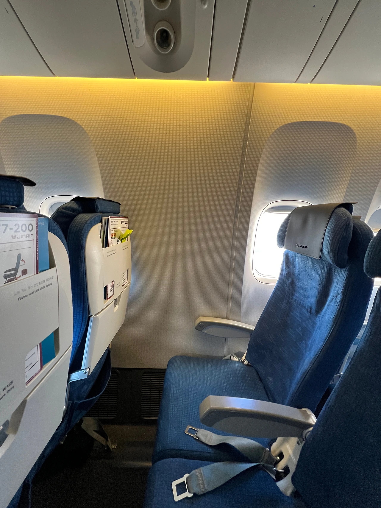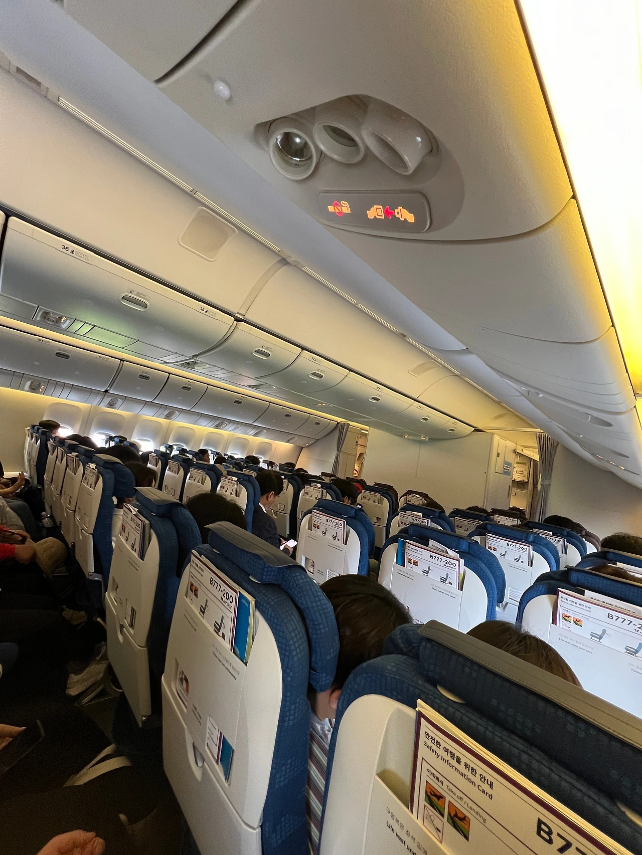 오늘 탄 비행기는 LCC이지만 제주행 국제선인지 3열 비행기라 많은 사람들이 제주로 향했다.