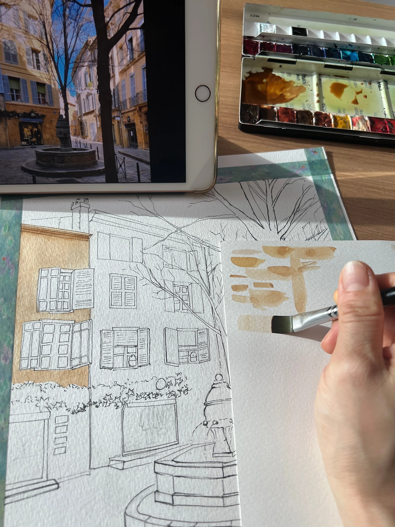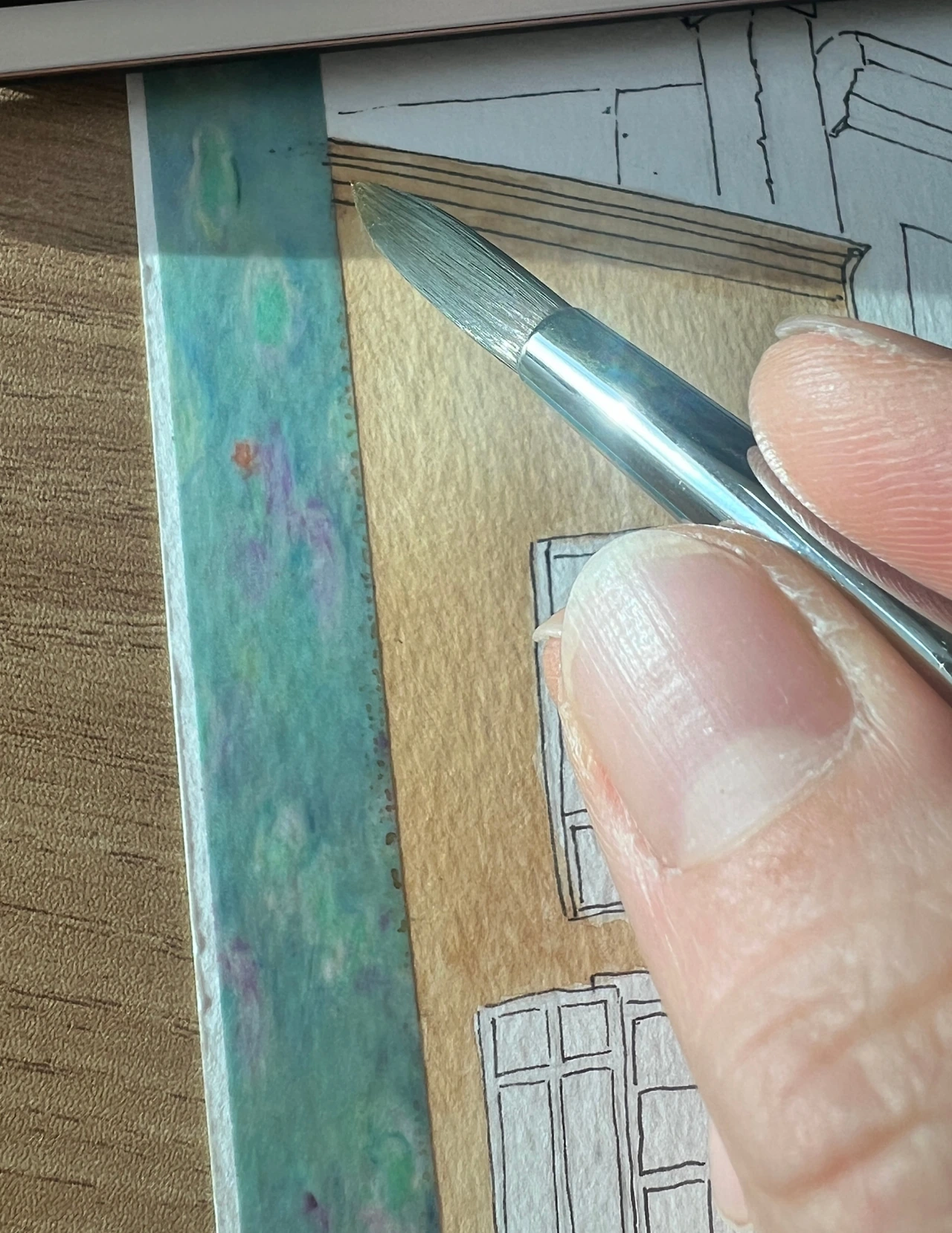 이웃 건물로 햇빛이 가려진 부분에 그림자를 드리우기 위해 진한 색을 입히고,