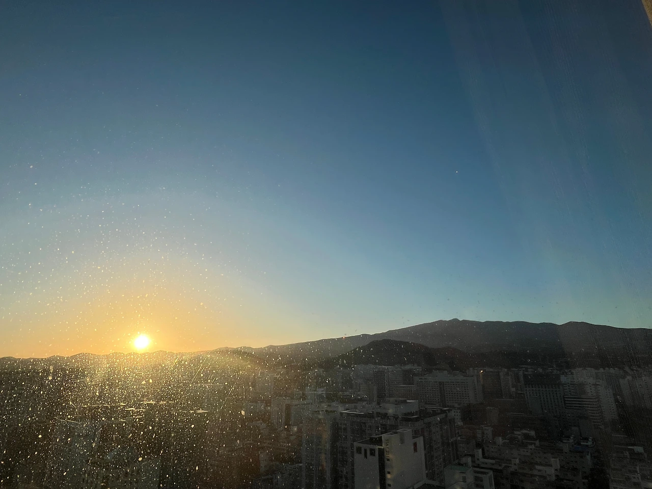 검은 배경아래 별처럼 반짝이던 작은 불빛들은 해의 빛 속으로 잠시 휴식을 취하고, 나는 새로운 하루를 맞이하기 위해 몸을 일으켰다.