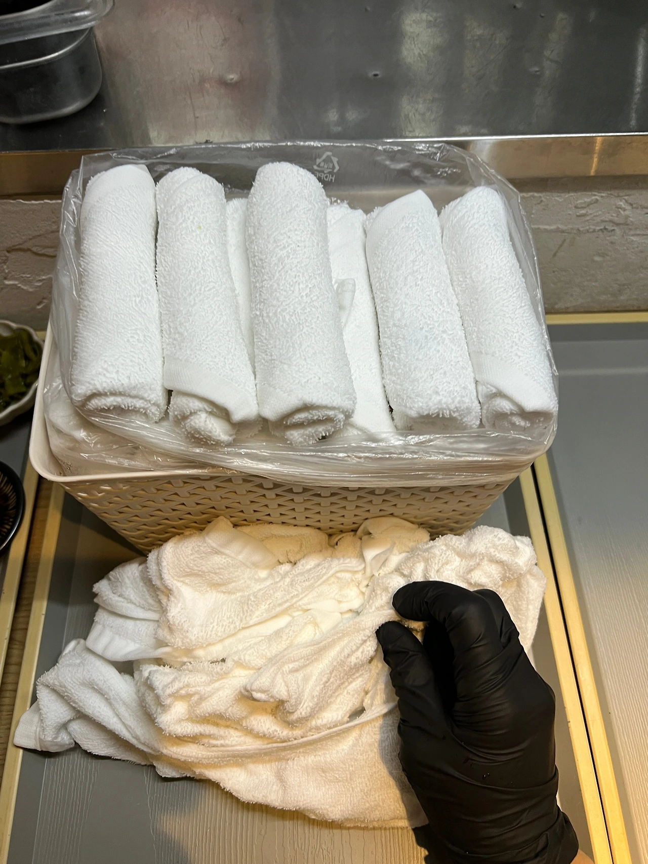 코스요리를 드시는 손님들에게 제공되는 시보리를 매일 세탁하여 개어두는게 나의 오전 루틴업무 중 하나이다.