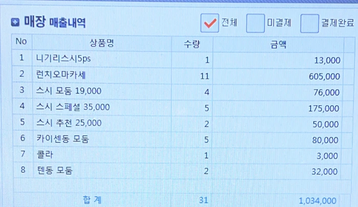 점심 매출로만 100만원이 넘었으니 10여평의 가게에서 3시간동안 만들어낸 금액으로는 적은 액수가 아니다.