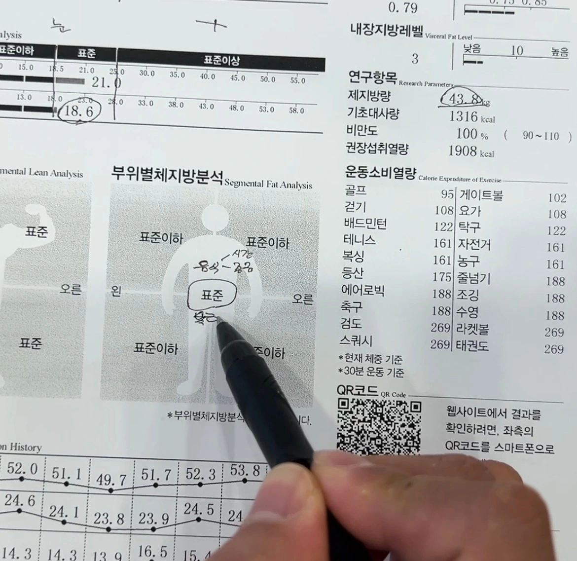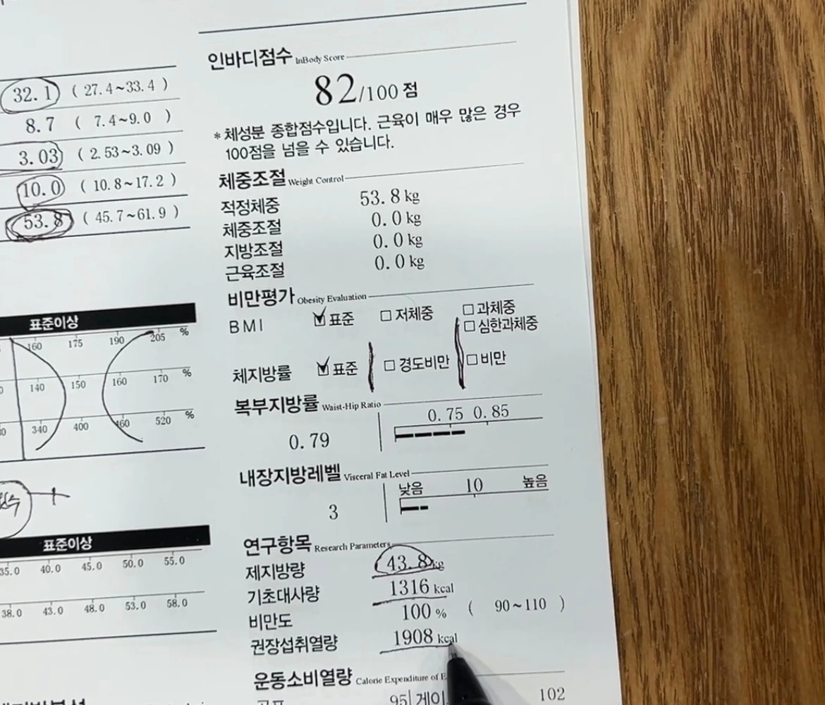 근력은 늘 표준 또는 표준 이상이 나왔었고 체지방도 표준 또는 표준 이하였지만, 단지 표준이하/표준/표준이상이라는 분석자료는 인바디상의 숫자를 정확하게 해석한것이 아니었던 것이다.