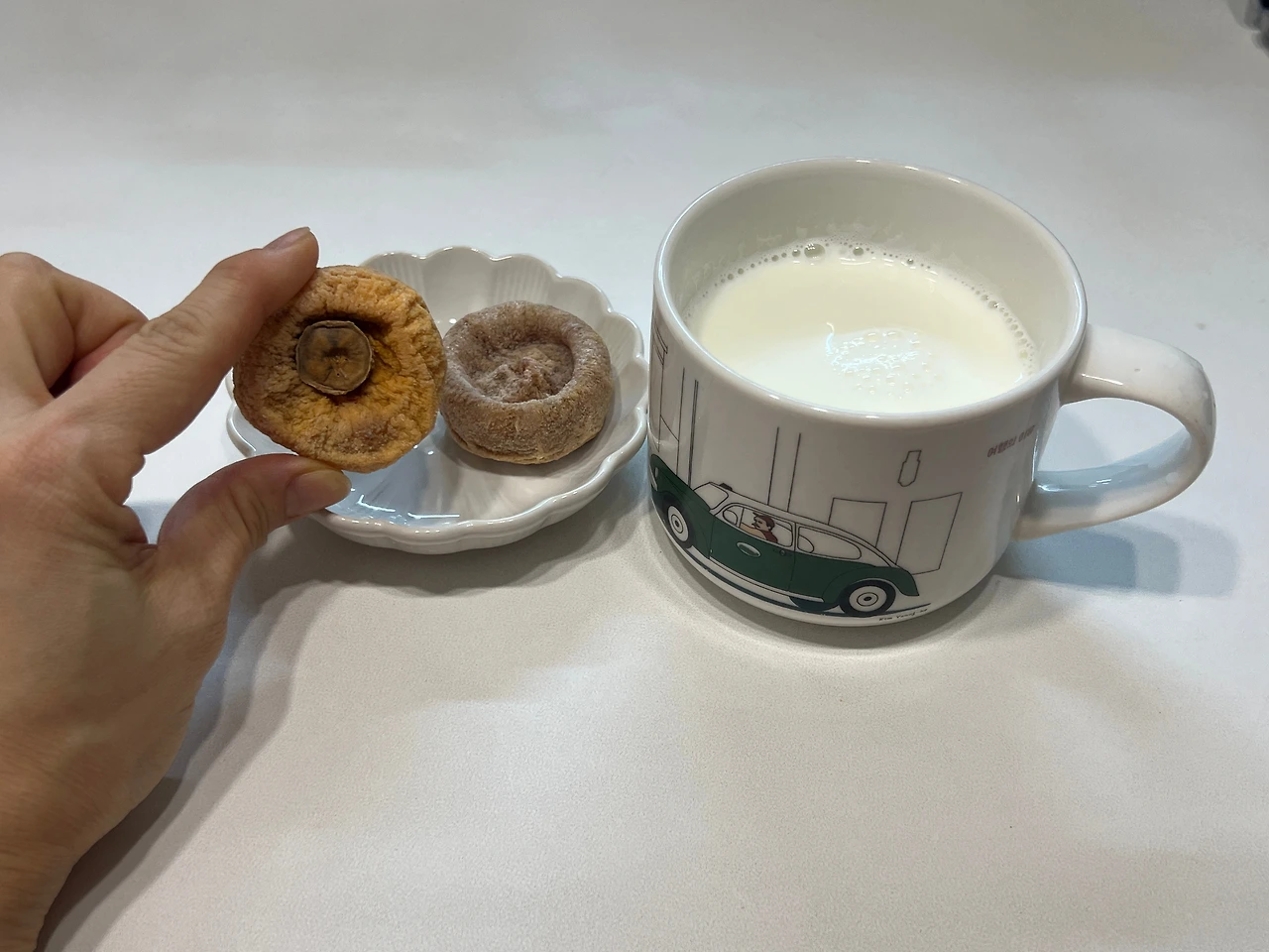 곶감과 흰우유 한잔을 함께 먹으니 맛있다.