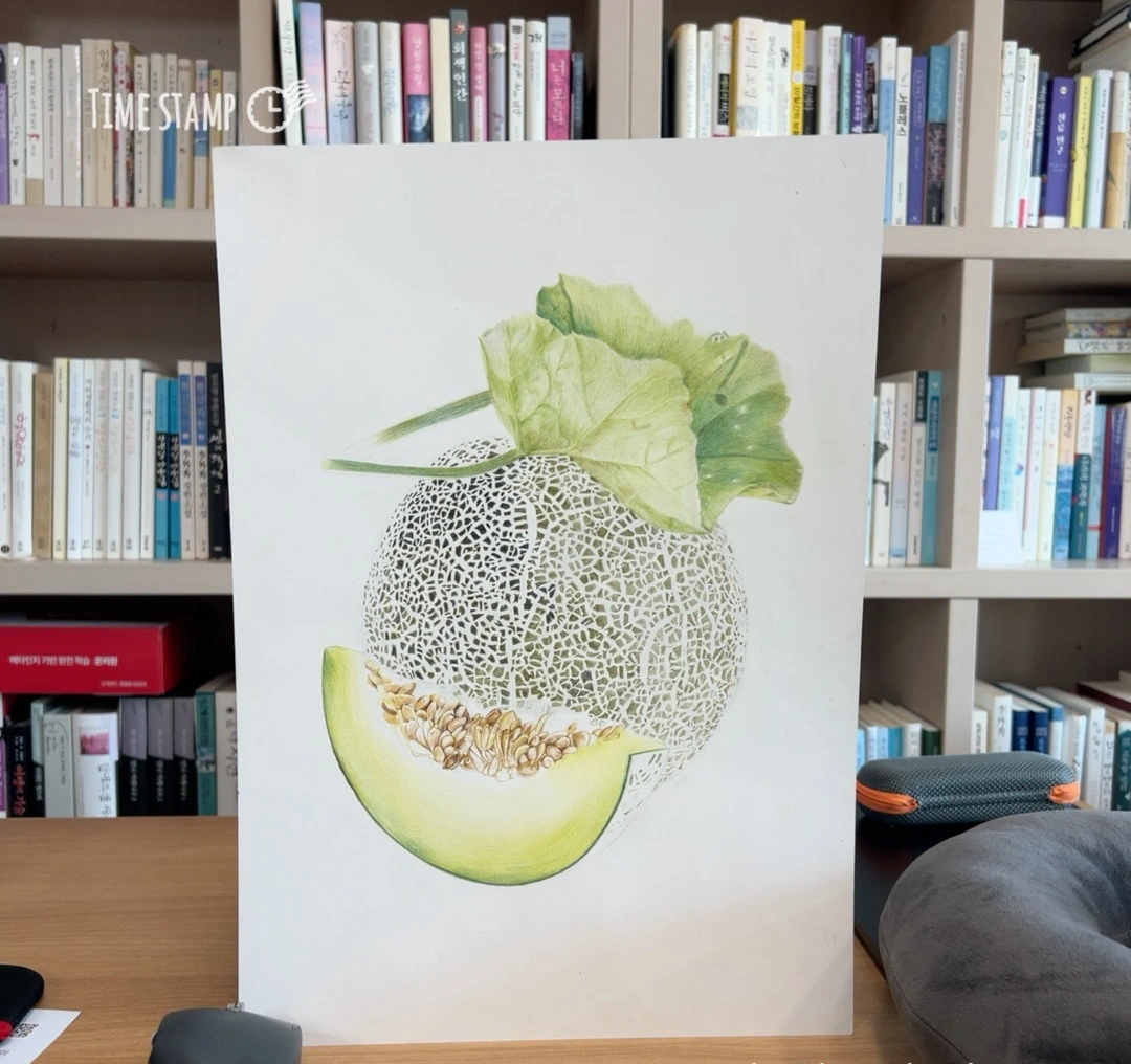 멜론 속의 단맛이 느껴질수 있도록 세밀하게 묘사해보면서 눈으로 맛을 느껴본다.