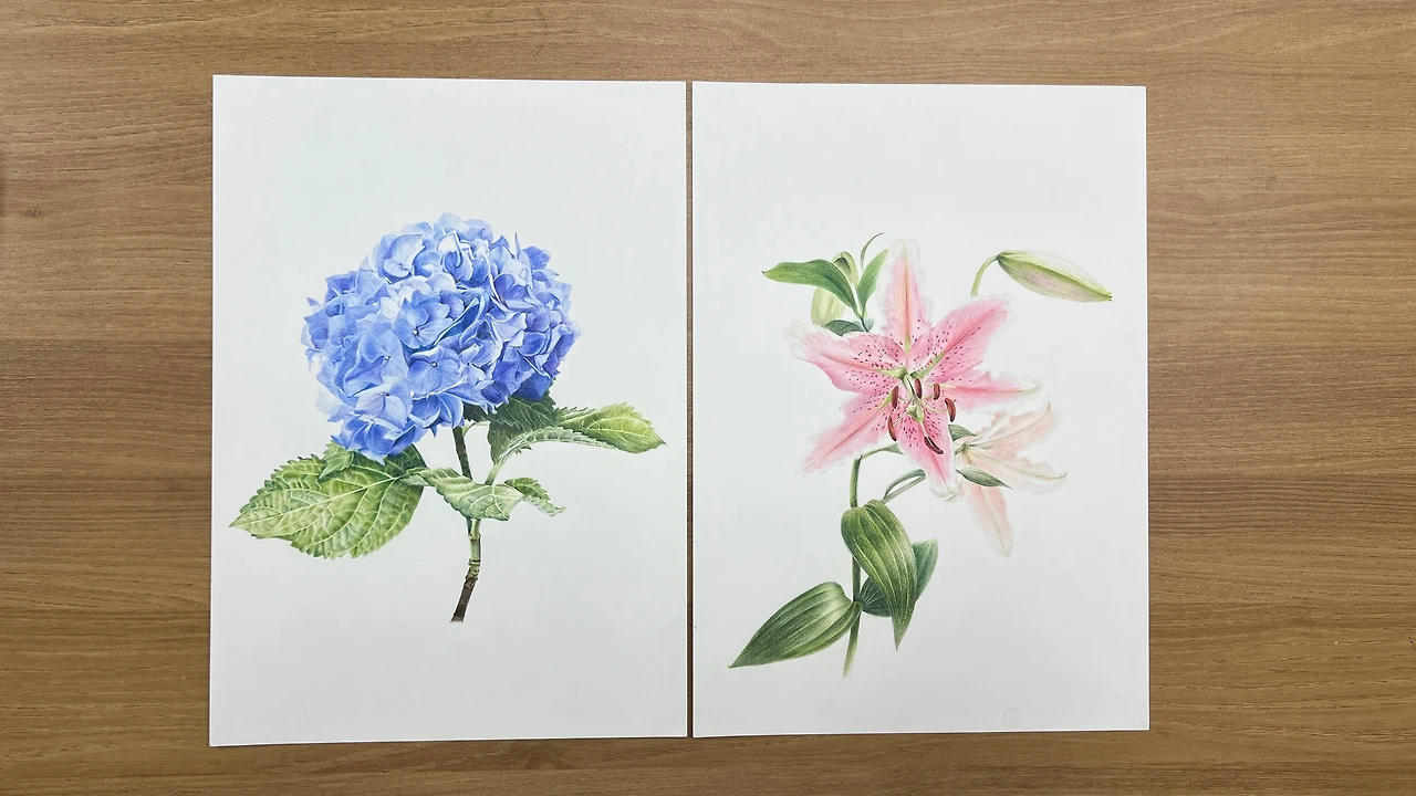 수국을 그리면서 모듬의 아름다움을 느꼈고, 집앞에 활짝 핀 백합을 그리면서 백합의 진한 향기를 오래 맡았었다.