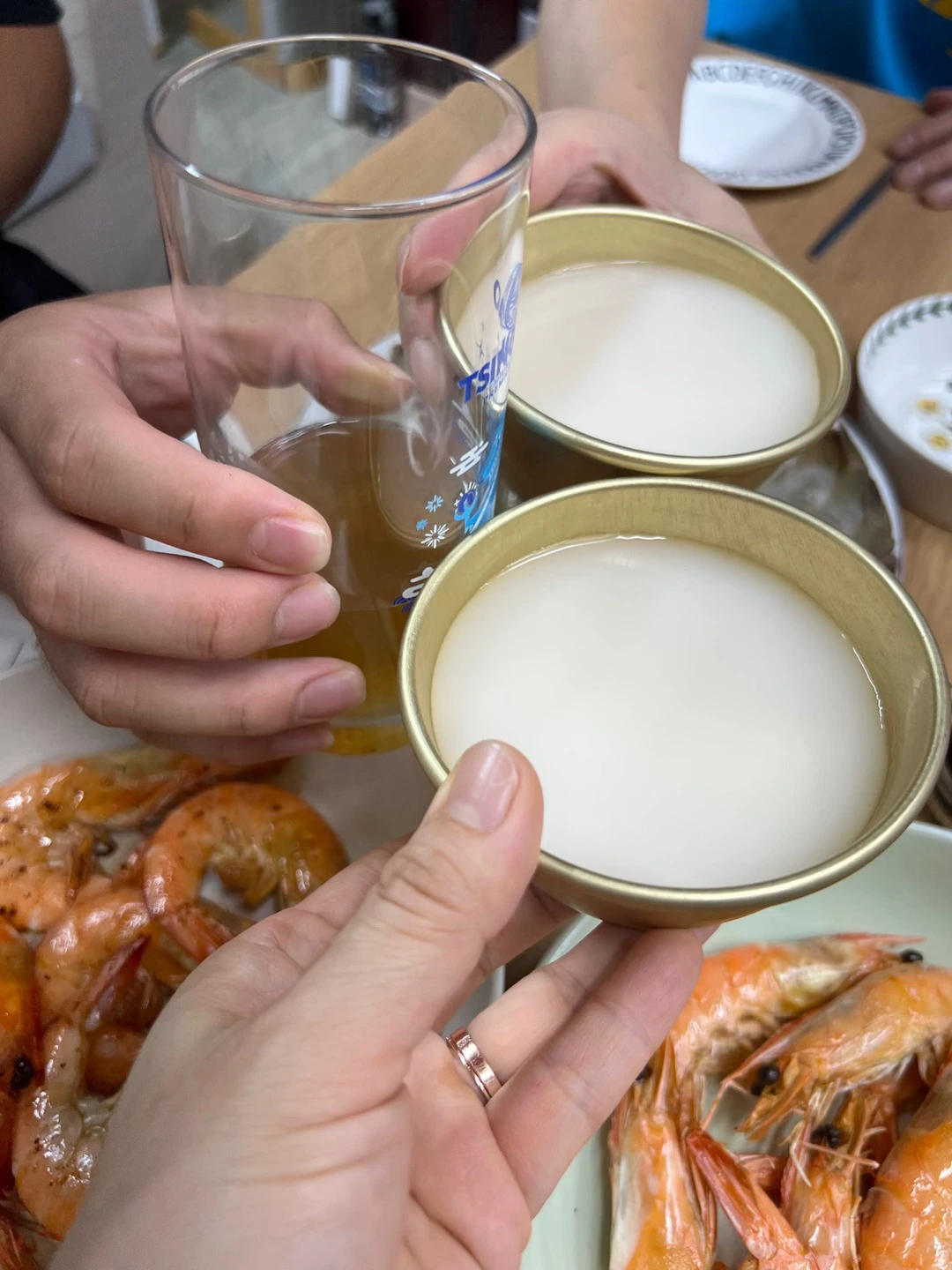 한잔 따라주는 재미도 좋고, 서로가 잔을 부딫히는 재미도 좋고, 아들의 물컵까지 함께 짠하는건 더 좋아서 자꾸만 막걸리를 찾기도 해요.