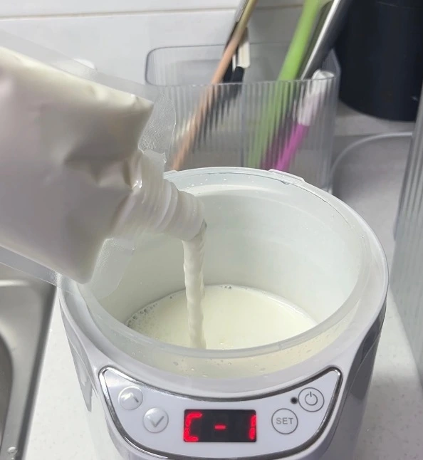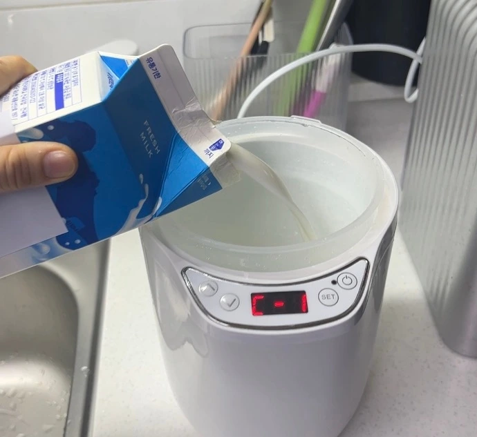 먼저 우유를 1리터정도 준비하신 후 요거트 메이커기에 넣어서 발효준비를 해주세요
