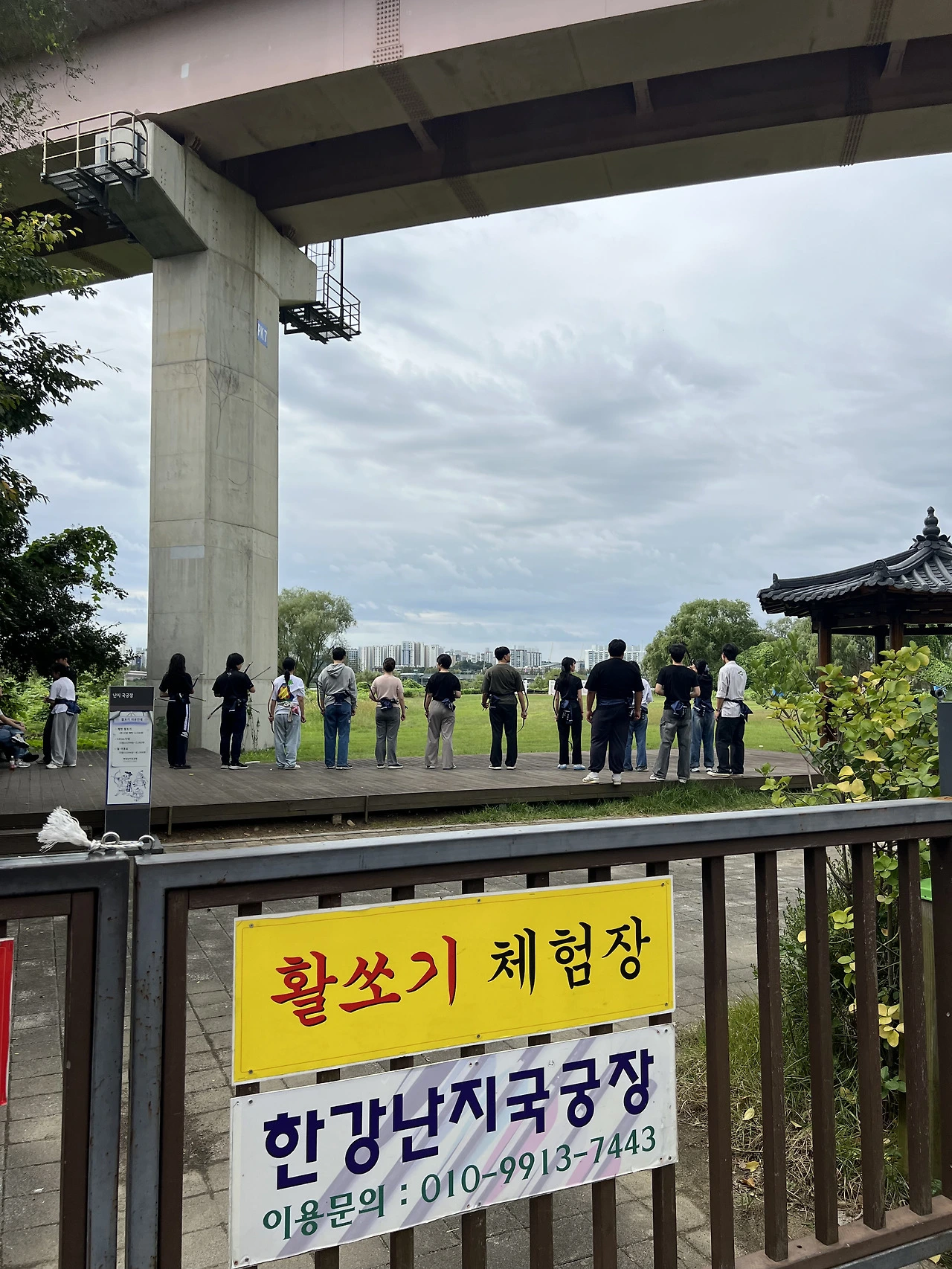 어머, 사람들이 활쏘기 체험을 하고 있나봐요.
