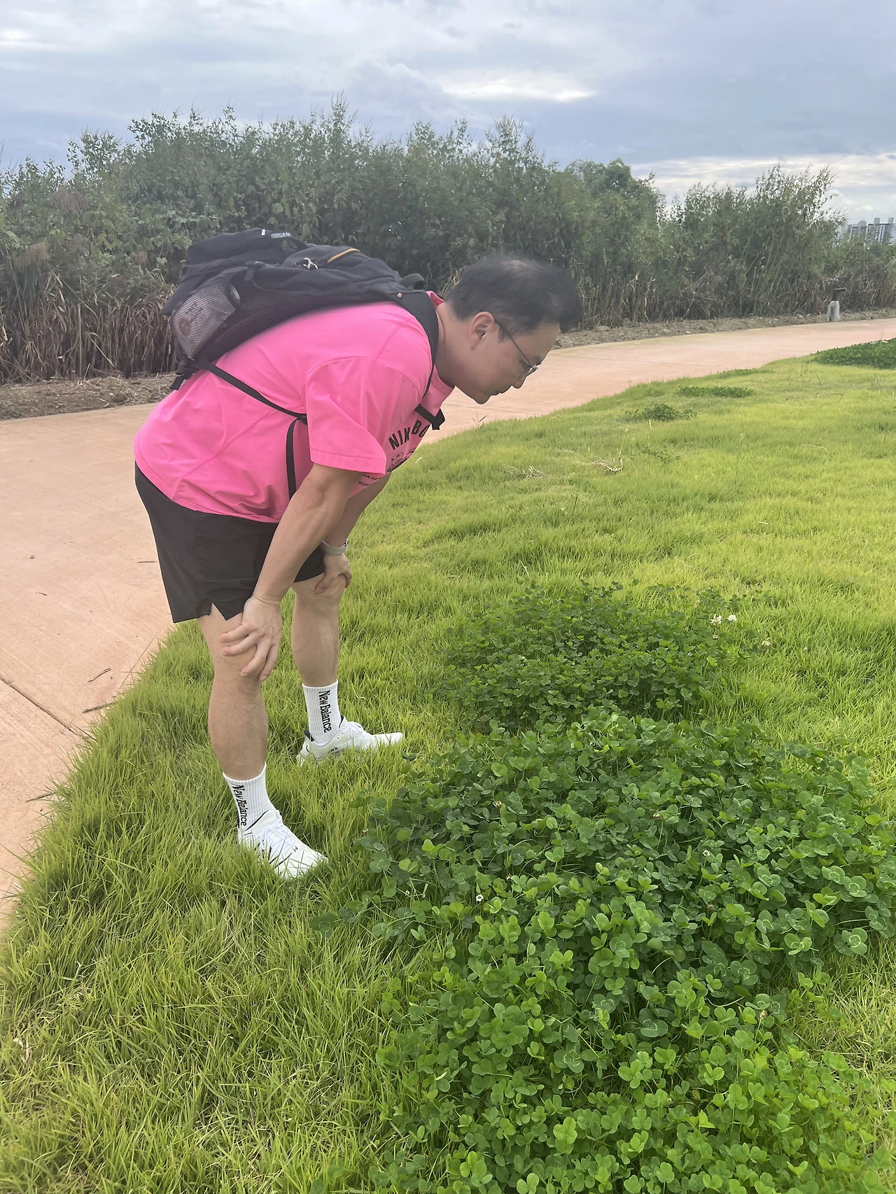 우리는 걷다가 풀밭에서 네잎클로버도 찾아보며 갔어요.