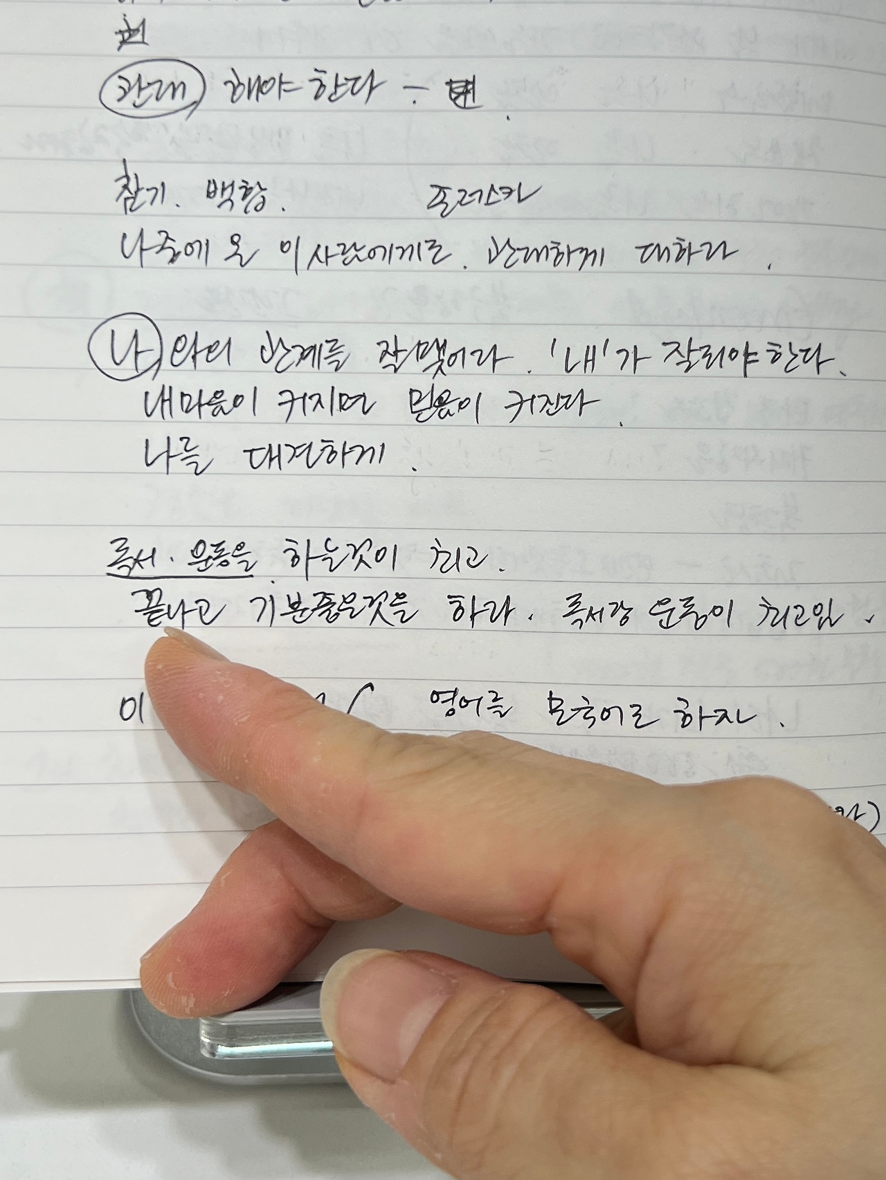 고명환 작가의 강연을 들으면서 글씨가 휘날리도록 필기한 것을 다시 한번 들여다보면서 곰곰히 생각해 보는 중이다.