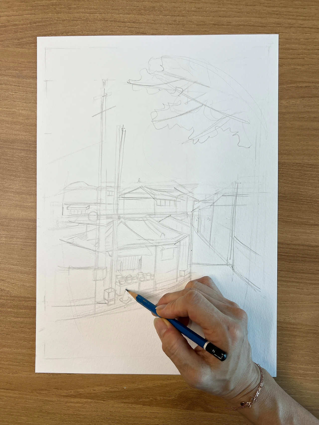 그렸다가 지우고 또 그리다가 지우니 흰 종이에 공간이 담겨지는 데도 시간이 오래걸린다.