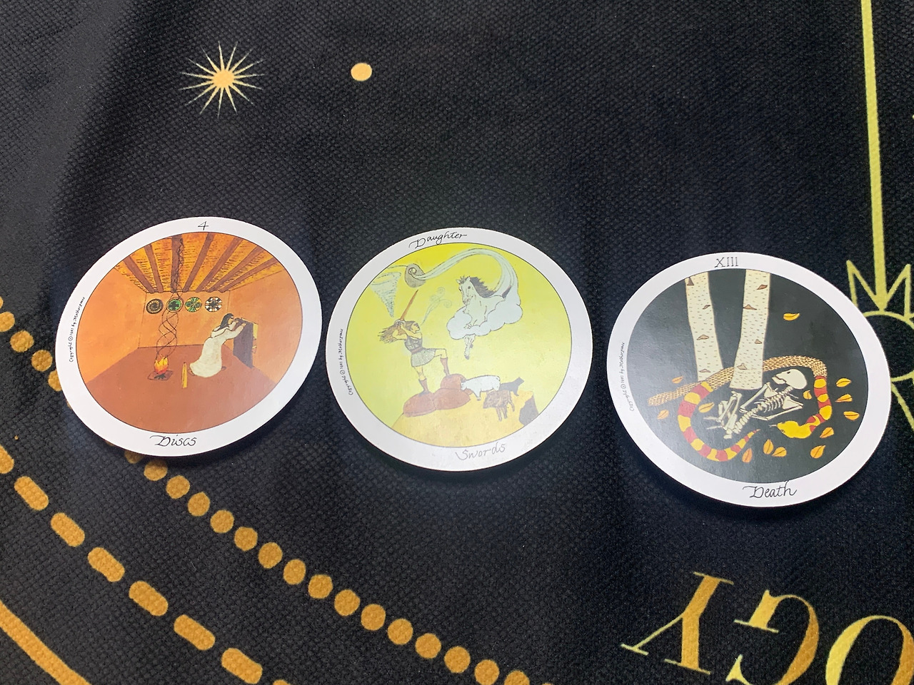 참여자 1은 최근에 자주 나오는 감정과 무의식을 상징하는 컵 카드에 대해서, 참여자 2는 오래도록 몸담은 일에 대한 새로운 방향성에 대해서, 참여자 3은 삶에 대한 새로운 모색과 예술 작업에 대해 , 다들 진솔하게 속내를 이야기했다. 그리고 나는 드로잉 모임의 앞 날을 타로에게 물어보았더니 한단계를 마무리하고 새로운 성장으로 나아가라고 한다.