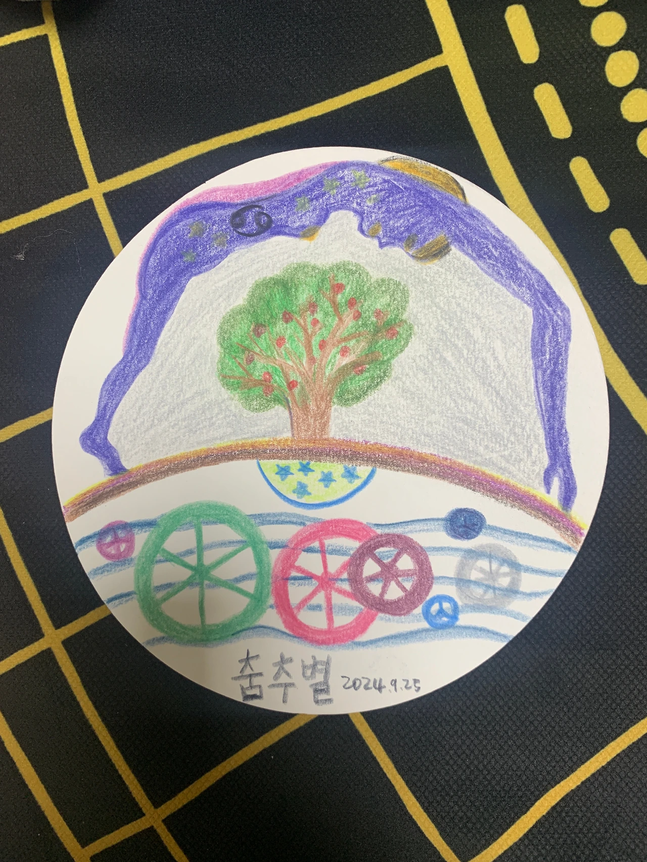 소울 넘버 4번 황제와 성격카드 바보 카드를 함께 가진 참여자가 그린 내면의 빛이 떠오르는 드로잉