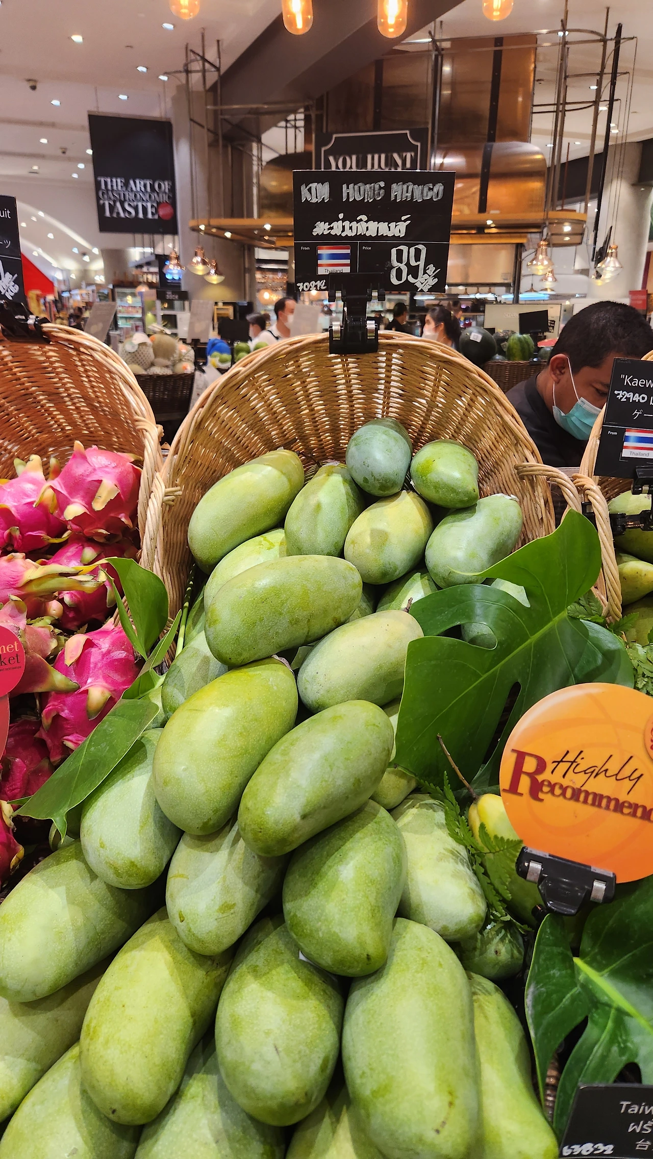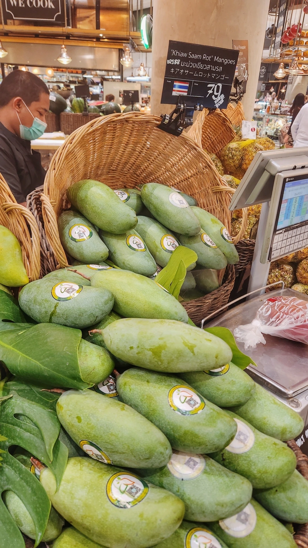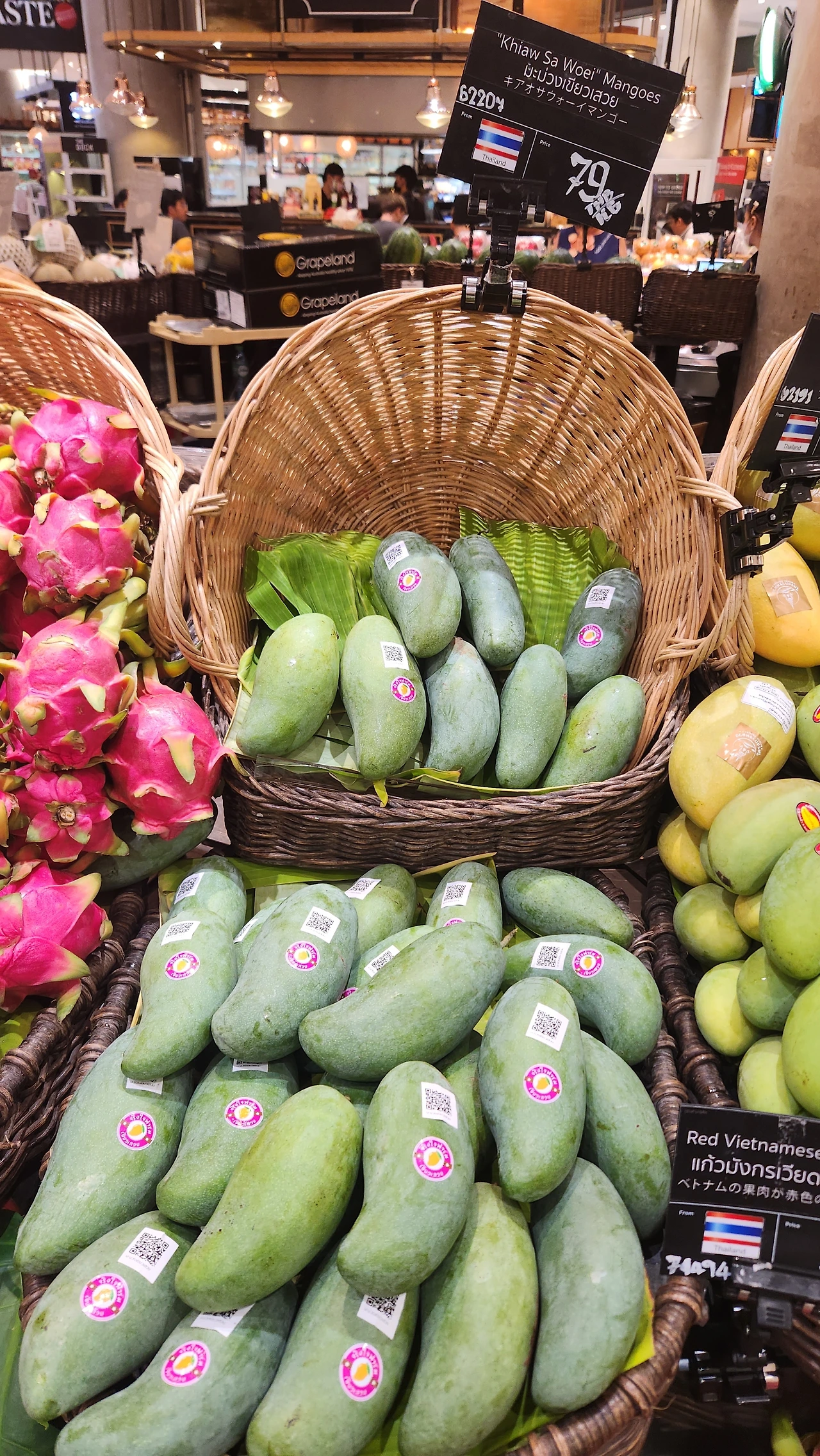 진열되어있는 여러 종의 그린망고들 - 왼쪽부터 킴홍, 키야우카민, 키야우삼롣