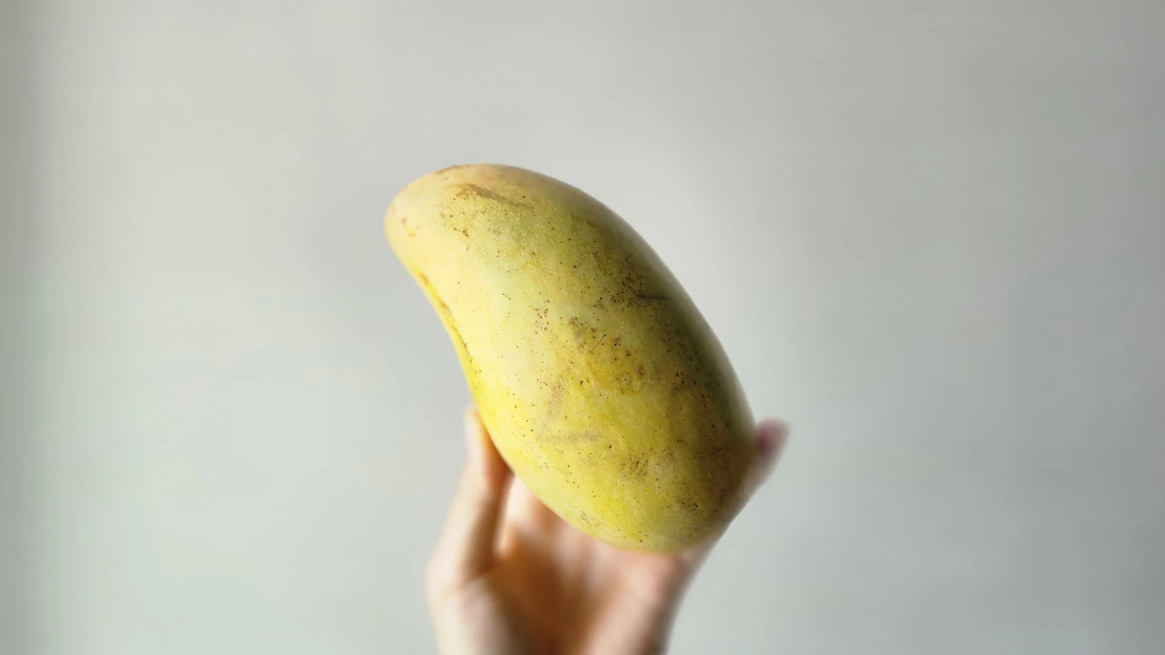 성인 손바닥만 한 크기에 가늘고 길쭉한 모양이다. 껍질은 개나리색과 옅은 붉은색이 섞였는데 그 색이 너무 귀하고 예뻐서 그냥 지나치질 못하겠는 망고다.
