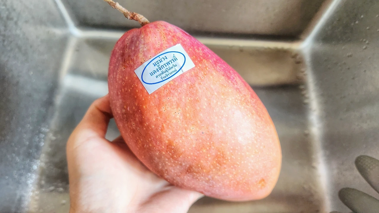 모양이 공처럼 둥글고 색이 불그스름해서 먹음직스럽다. 한국에서 "애플망고"라고 불리는 종이랑 비슷하게 생긴 것 같은데, 정확히 같은 종인 지는 잘 모르겠다. 애플망고를 먹어본 적이 없어 맛이 비슷한지도 모르겠다.