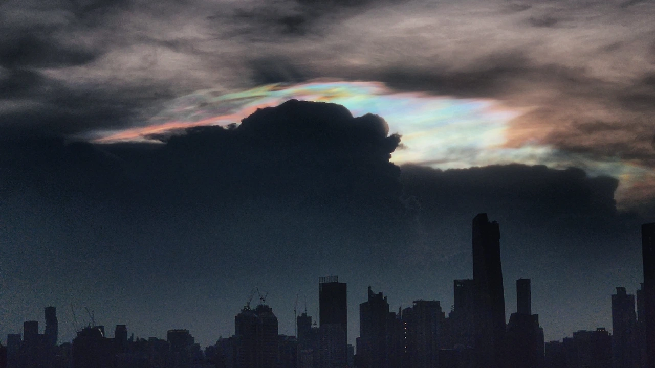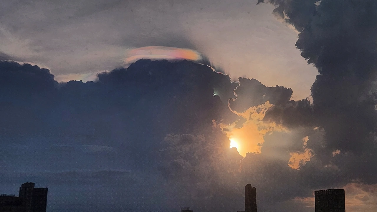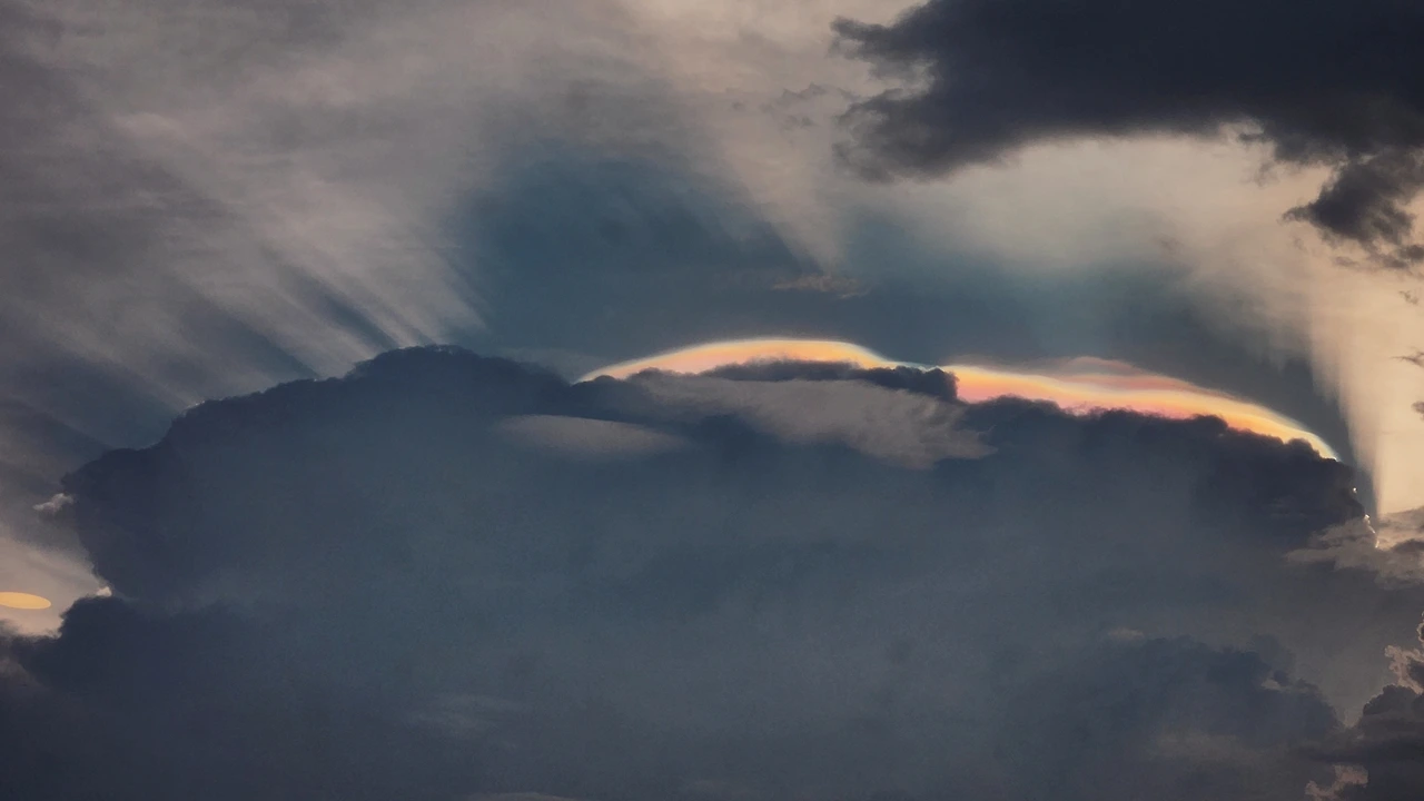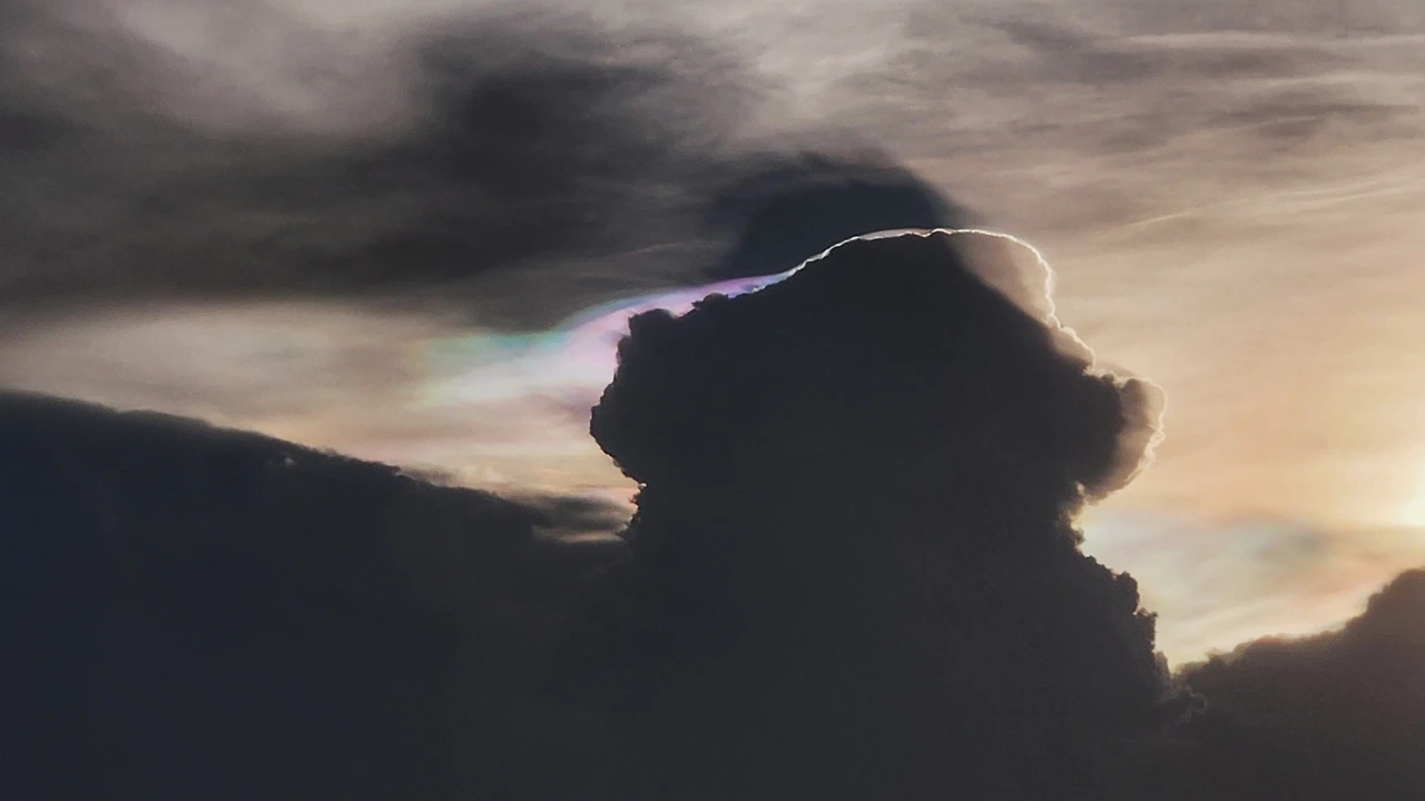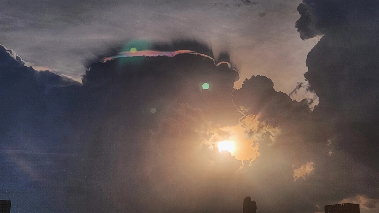 해가 지면서 구름 너머에 이런 무지갯빛 후광이 비추었기 때문이다. 해가 지는 동시에 구름이 움직이면서 그 후광의 빛깔과 모양도 시시각각 변화했다.