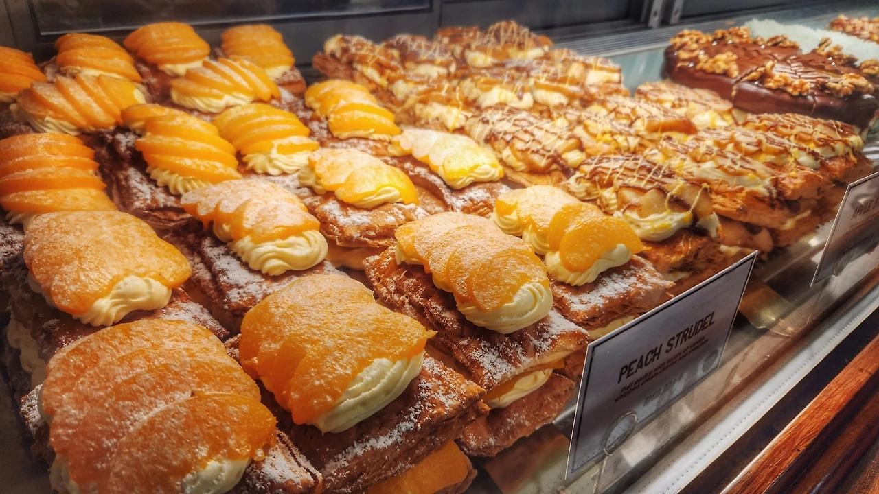 이 복숭아와 크림이 켜켜이 올라간 페이스트리가 정말 멋졌다.