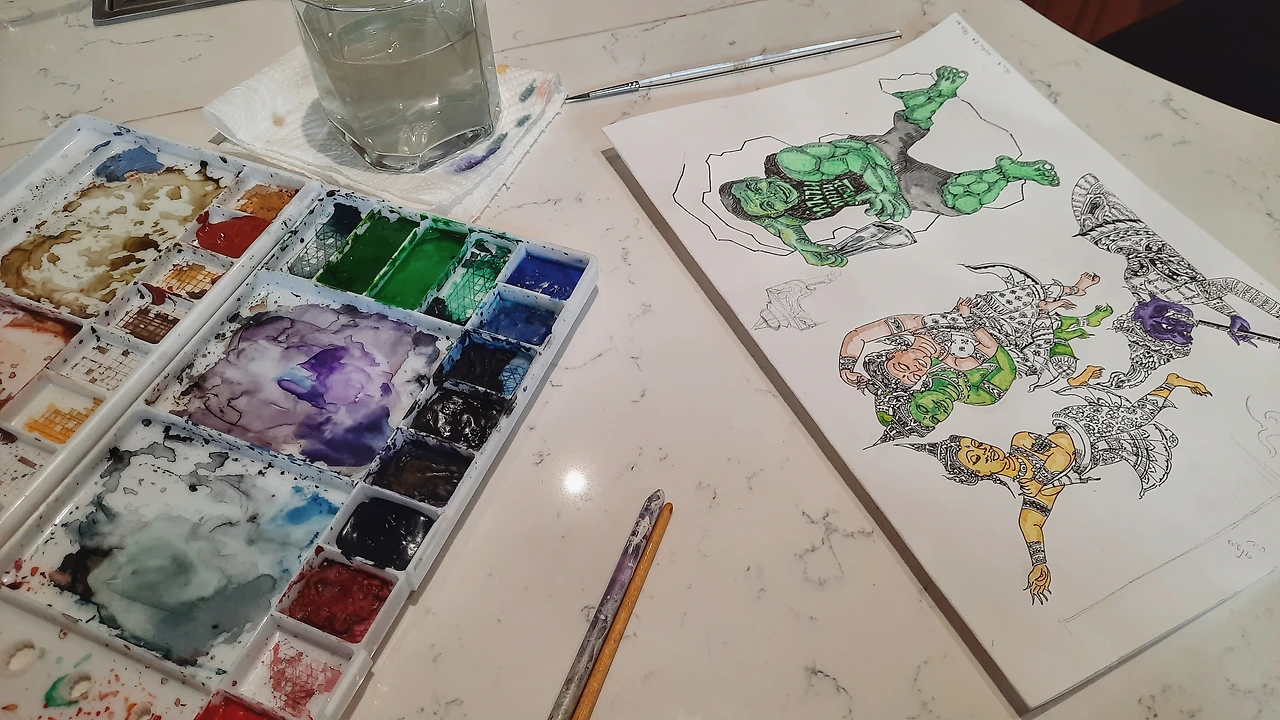 밖으로 보이는 방콕 구시가지의 고즈넉한 풍경. 조용한 시간을 이용해 멋진 그림을 그리는 바리스타 분이 계셨다.