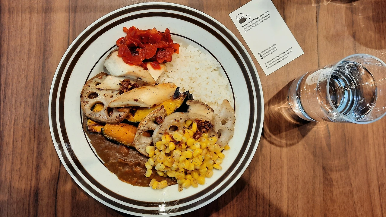 의외의 일식 카레 맛집이다. 모든 테이블이 전부 다 카레를 시켜먹고 있었다. 매콤한 구운 야채 카레 185밧 (약 6,800원). 연근이 정말 맛있었다. 치킨 카츠 버전도 있다.
