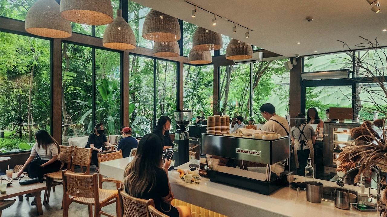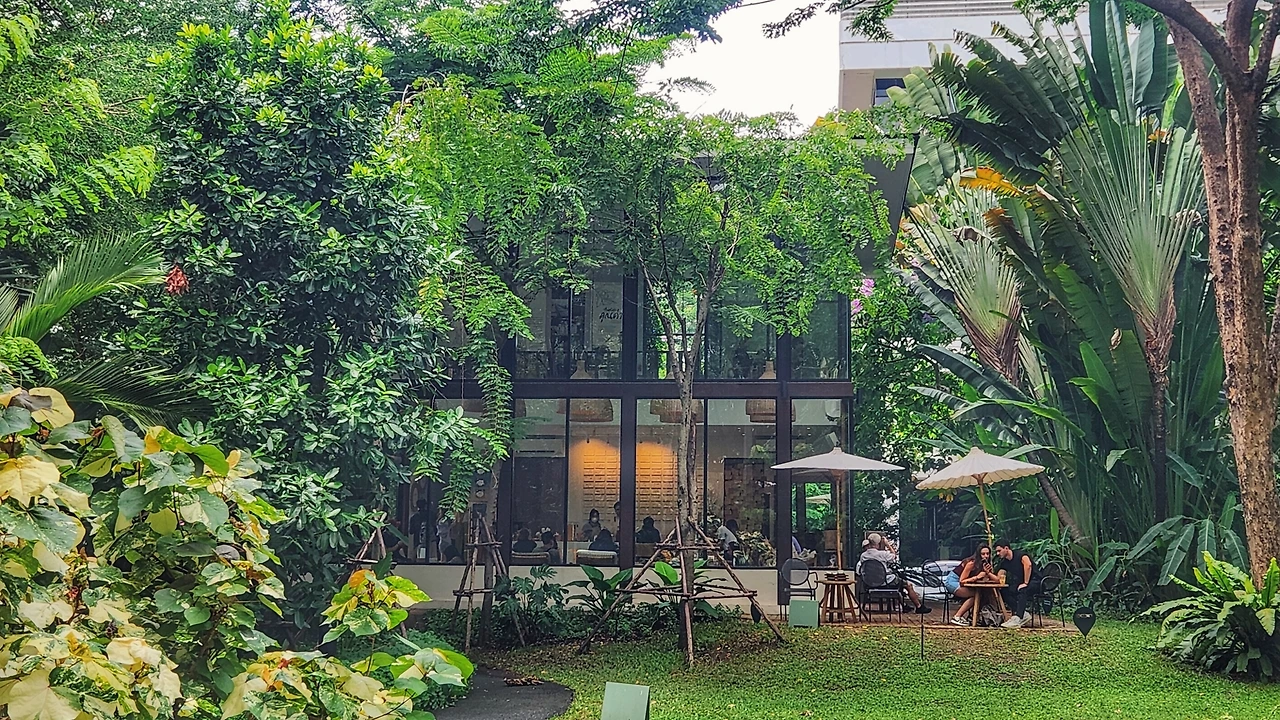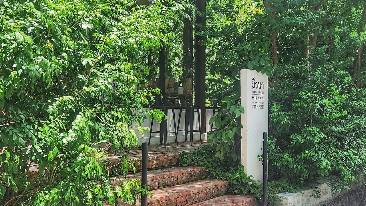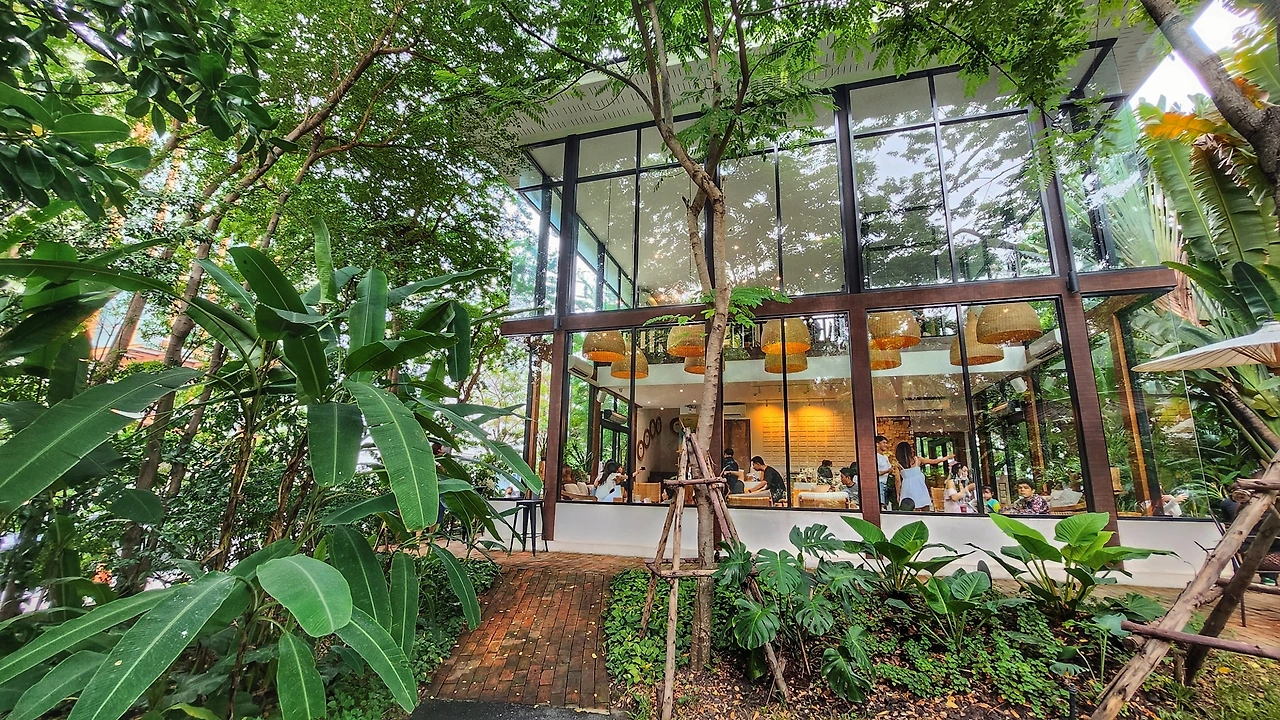 숲 속 한가운데에 있는 듯한 미바나 카페 전경공원으로 향하기 전, 우리의 모닝커피를 책임질 카페는 여기다. '오가닉 포레스트'라는 카페 이름처럼 한껏 수려하게 가꾸어놓은 정원이 너무나 아름답다. 그야말로 '내가 지금 방콕에 있다'는 기분이 십분 들게 하는, 이른 아침에 반쯤 떠진 눈을 비벼가면서까지 들러볼 만한 카페다. 쭉쭉 뻗은 열대식물로 가득한 정원을 바라보며 잠시 멍도 때려보고, 향긋한 커피 한 잔 들이키며 활기찬 하루를 위한 에너지를 축적해 보자.