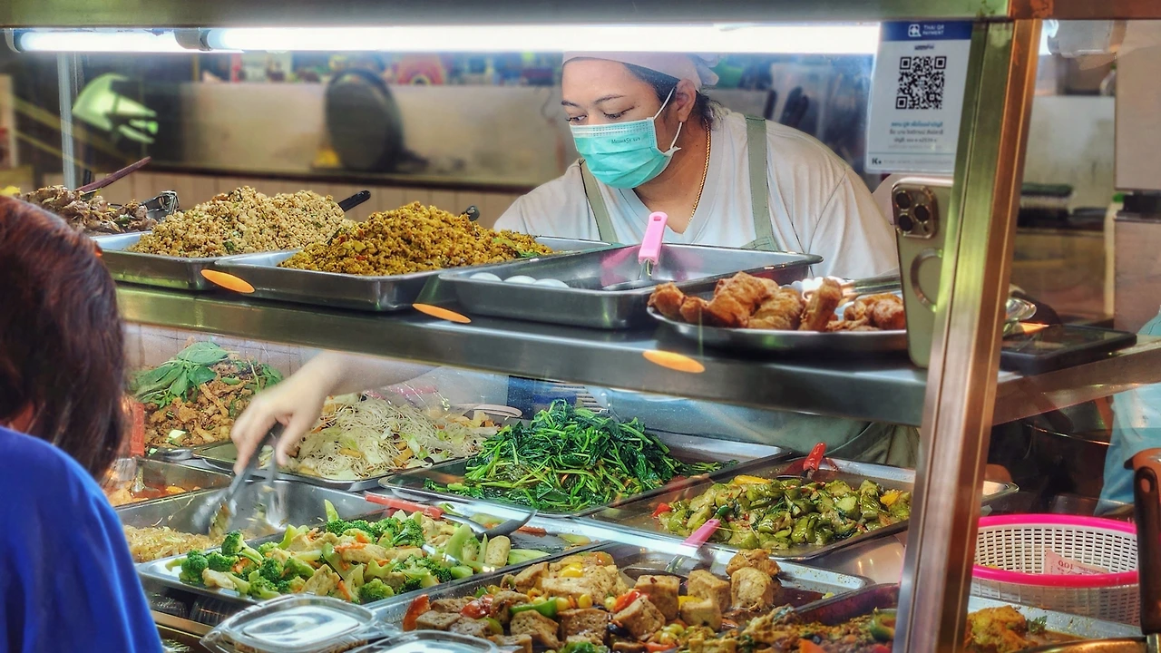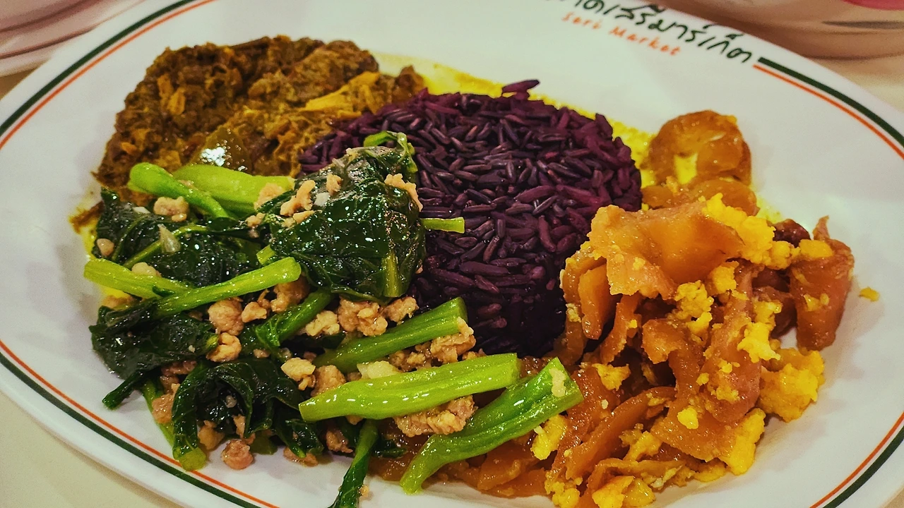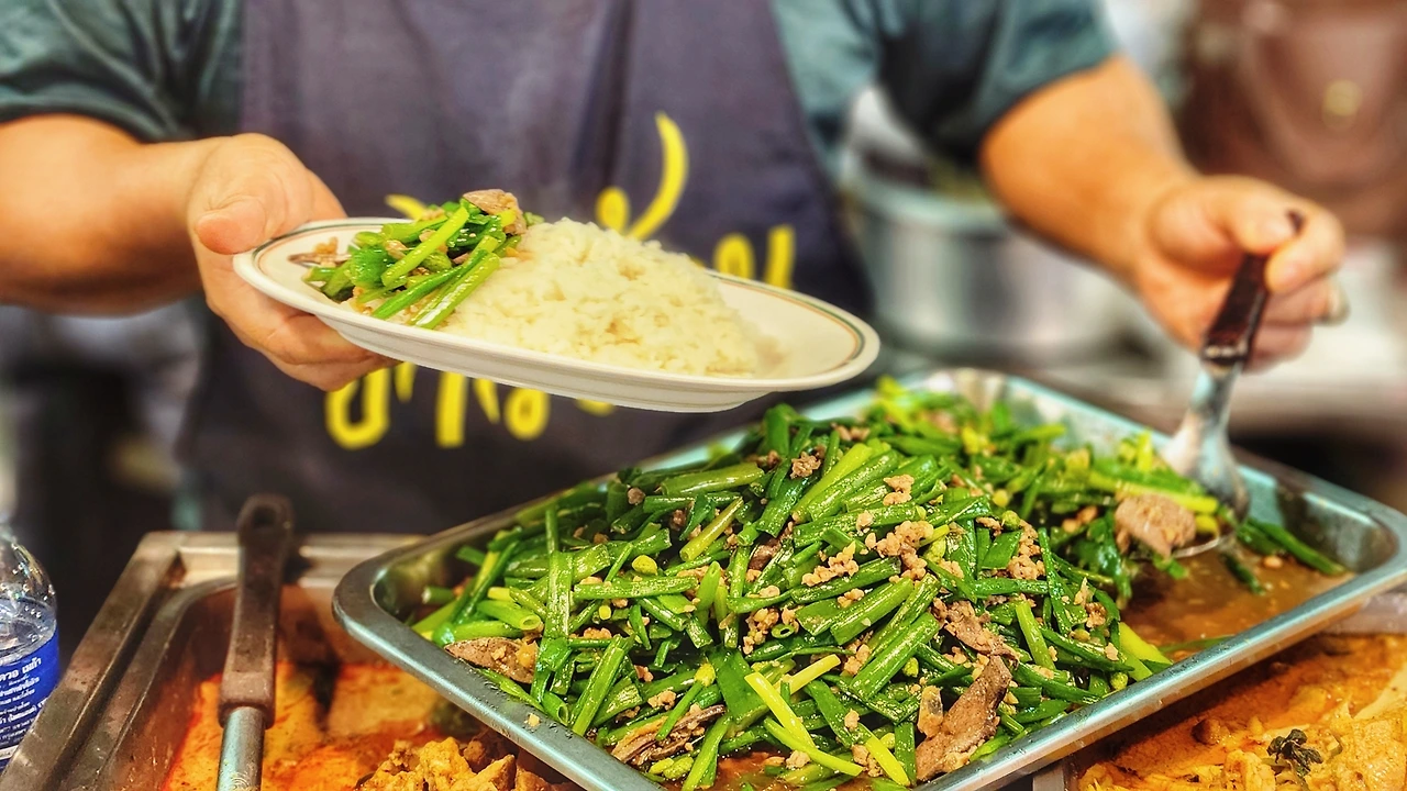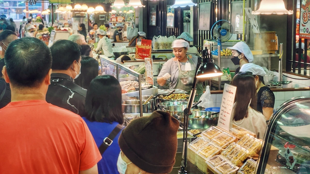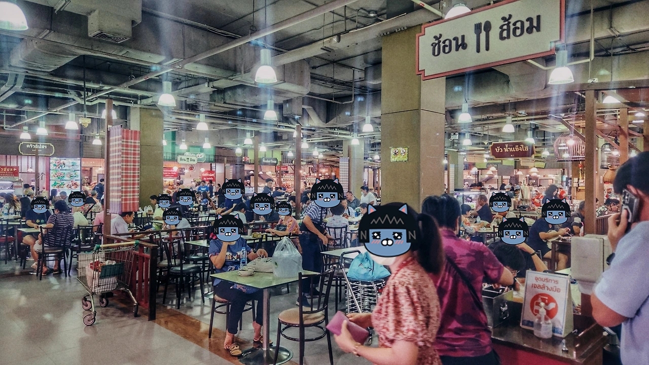 평일이고 주말이고 할 것 없이 점심시간에는 식사하러 나오는 사람들로 엄청나게 붐빈다.아니 지금 이렇게 멀리 나와서, 땀까지 쫙 빼놓고는, 겨우 푸드코트에서 밥을 먹으란 소리냐? 하는 볼멘소리가 들리는 것 같다. (잠시 수저를 내려놓고 진정해 주세요.) 여기는 다름 아닌 내가 '집밥 같은' 태국 음식이 먹고 싶을 때 오는 곳이다. 자극적인 맛으로 즐거움만 챙기고 뒷맛이 껄끄러운 그런 음식이 아니다. 담백하고 건강한데 맛까지 있어 만족감이 높은 소울푸드같은 음식을 맛볼 수 있다. 오늘 우리가 넝번에서 즐기고 있는 심신의 힐링에 바로 이 푸드코트에서만 먹을 수 있는 현지 음식이 포함인 것이다.