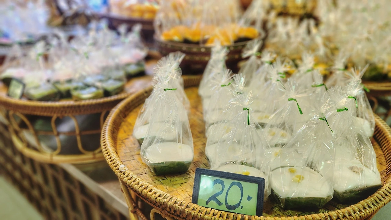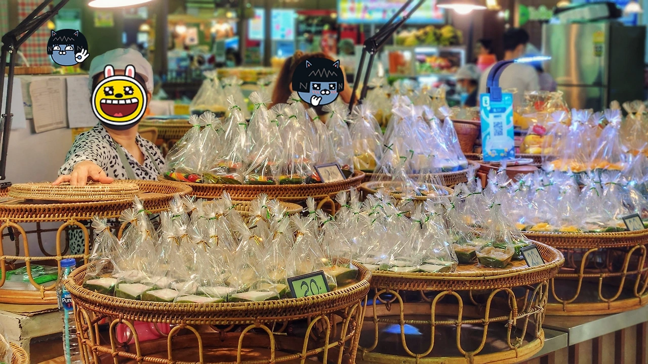 맨 왼쪽이 내 바로 앞에 서계시던 분의 추천으로 산 반찬. 무짠지 무침을 계란과 볶은 것 같았다. 밥도둑 테스트 통과.디저트와 간식도 이 푸드코트에서 놓칠 수 없는 요소다. 요리조리 돌아다니면서 구미가 당기는 것을 양손 가득 골라도 만원을 넘기기가 어려울 정도로 저렴한 가격은 덤이다. 태국 집밥으로 든든히 채운 배를 두드리며, 달달한 주전부리 몇 가지 사가지고 다음 장소로 떠나보자.