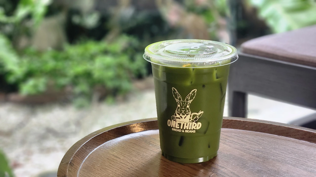 원써드 카페 입구 하루 종일 커피를 너무 많이 마셔 고른 말차라떼와 피치소다.