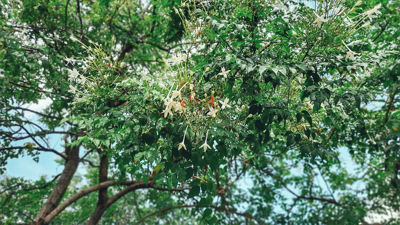 이 꽃은 인디언 코르크나무의 재스민. 미칠 듯이 달달한 꽃향기를 내뿜는다. 눈에 띄면 무조건 땅에 떨어진 꽃잎을 주워서 코 밑에 붙이고 다녀야 한다고 법으로 정해져있다. (아님)